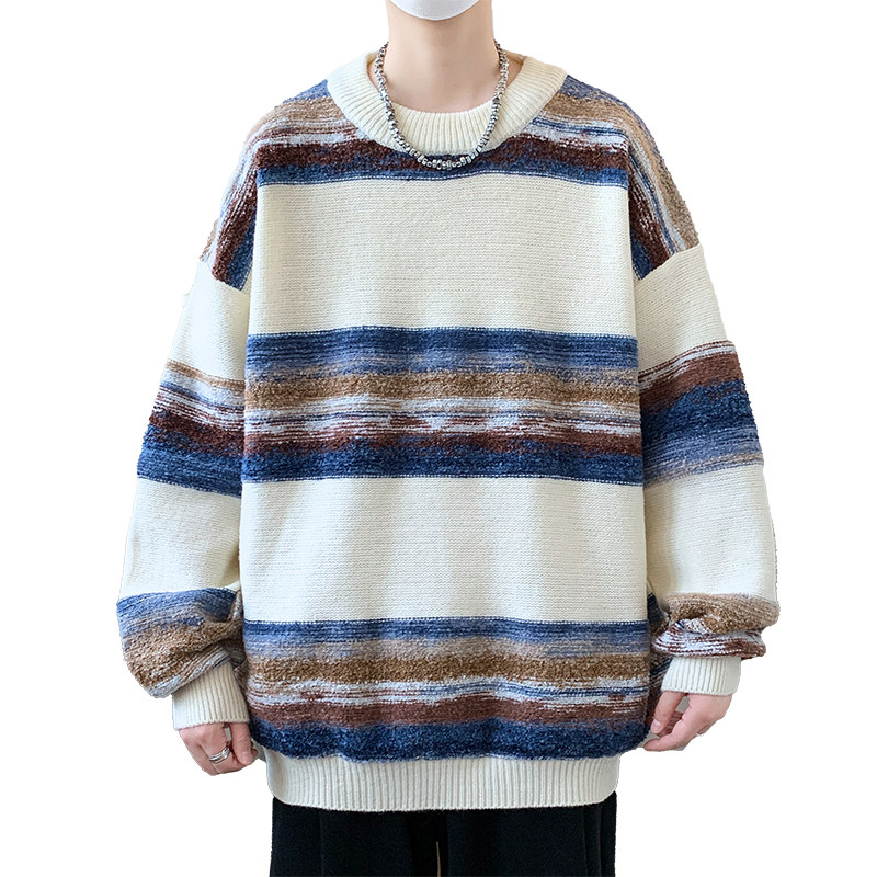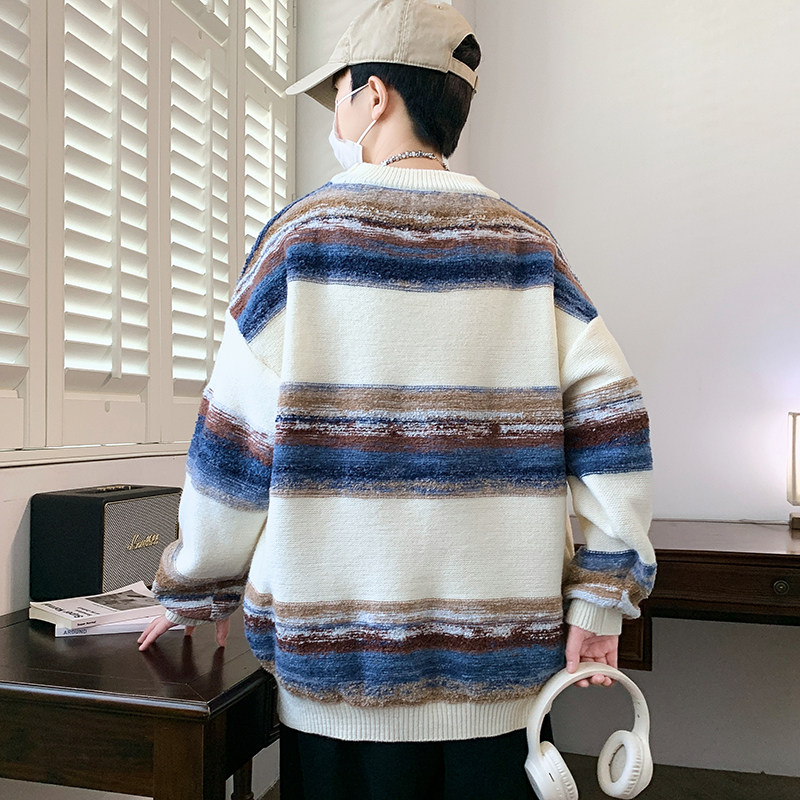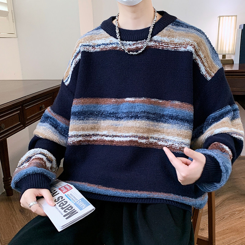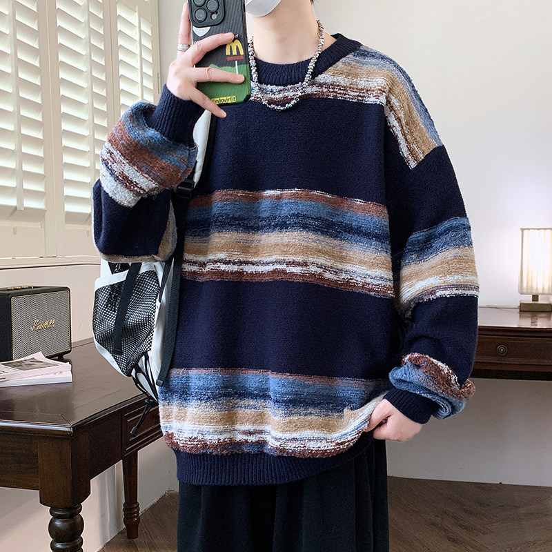以纯慵懒风条纹毛衣宽松潮牌保暖