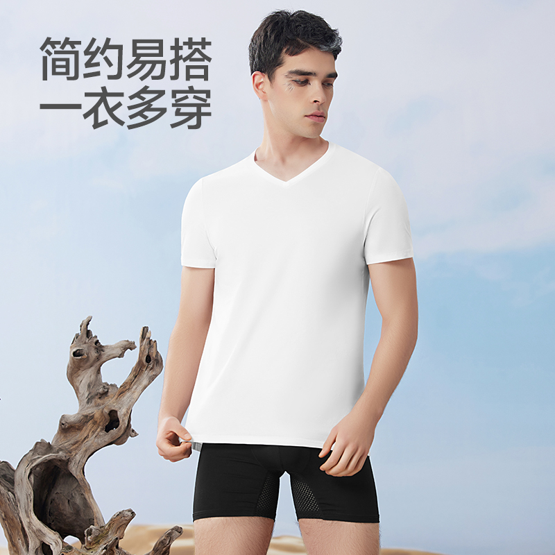七匹狼男士短袖男款t恤100%纯棉黑色T打底夏季青少年背心2025新款