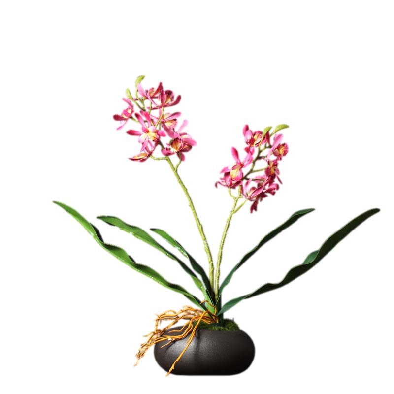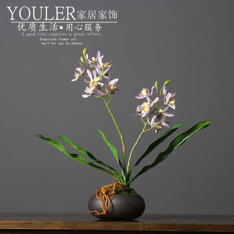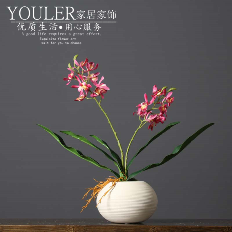 中式仿真蝴蝶兰花手感假花创意客厅餐桌茶几装饰摆件陶瓷花瓶套装