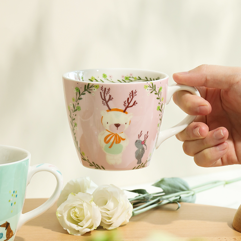 蓝莲花小熊马克杯陶瓷杯子水杯小众设计感可爱家用高颜值卡通女生