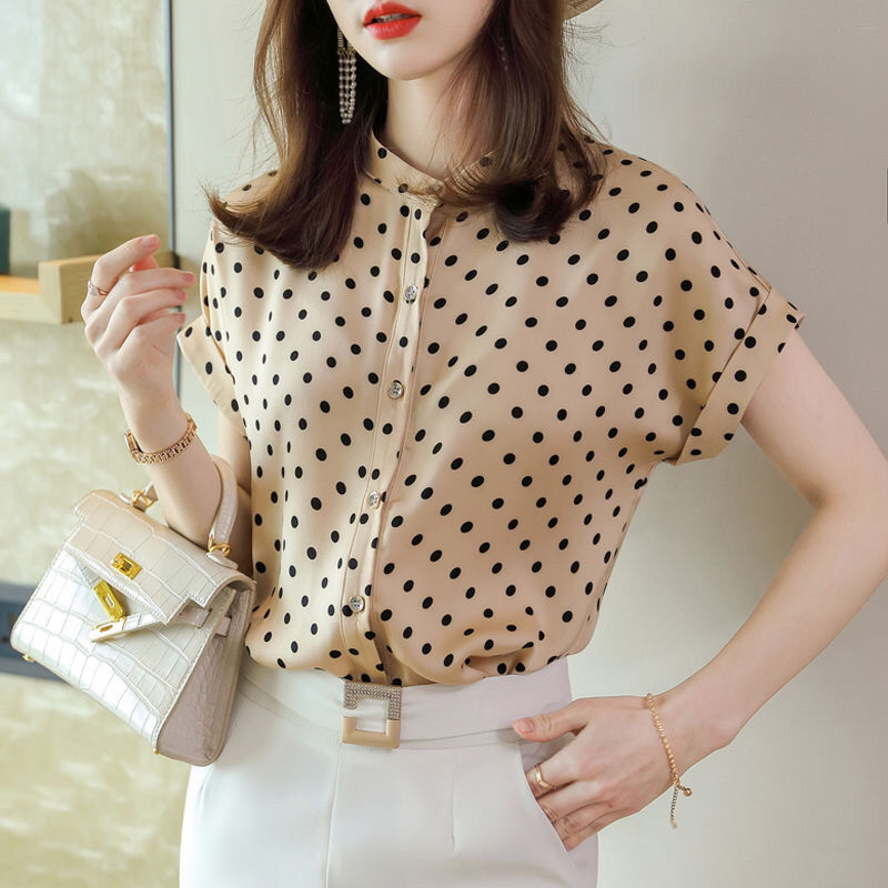 阿玛施正品女装2024夏季新款专柜设计感小众波点立领宽松短袖衬衫