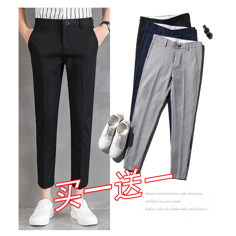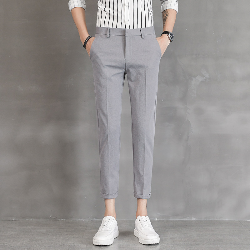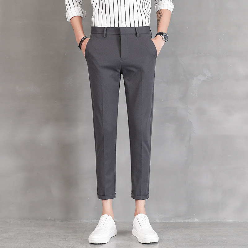 秋季垂感九分西装裤男修身小脚青年韩版潮流商务免烫裤子9分休闲
