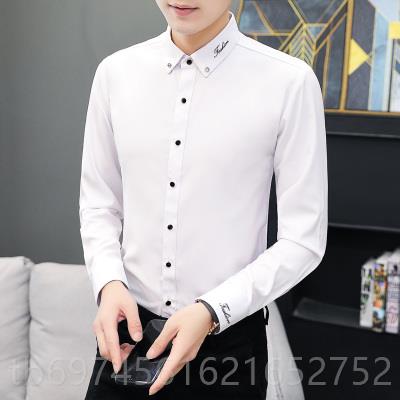 新款季长袖白衬衫男职士版潮流修身韩休秋闲衬衣业寸衫商务正装工