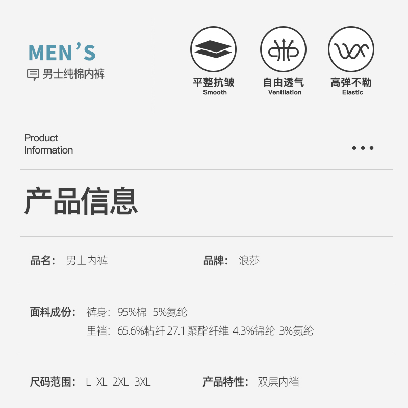 浪莎男士内裤纯棉男式四角内裤
