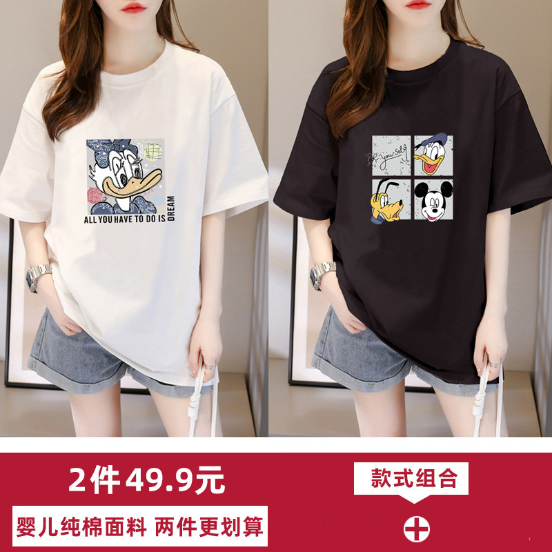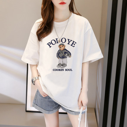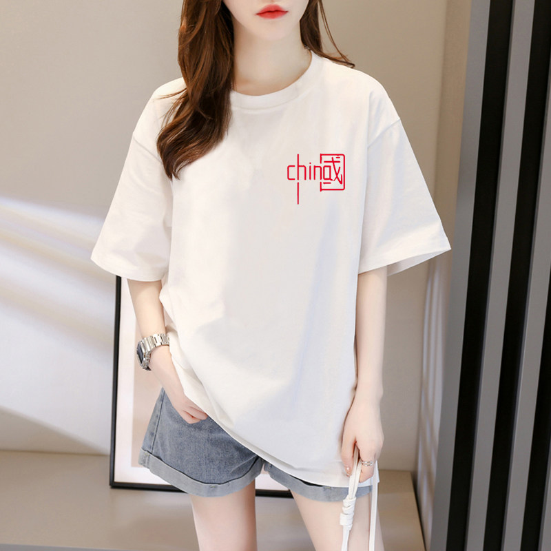 纯棉短袖t恤女夏季新款设计感印花休闲体恤潮宽松大版中长款上衣