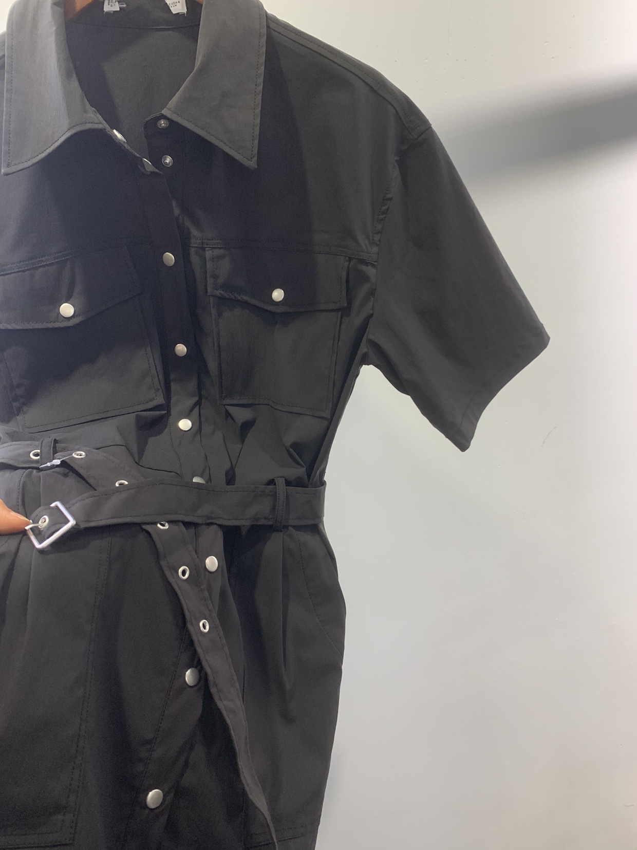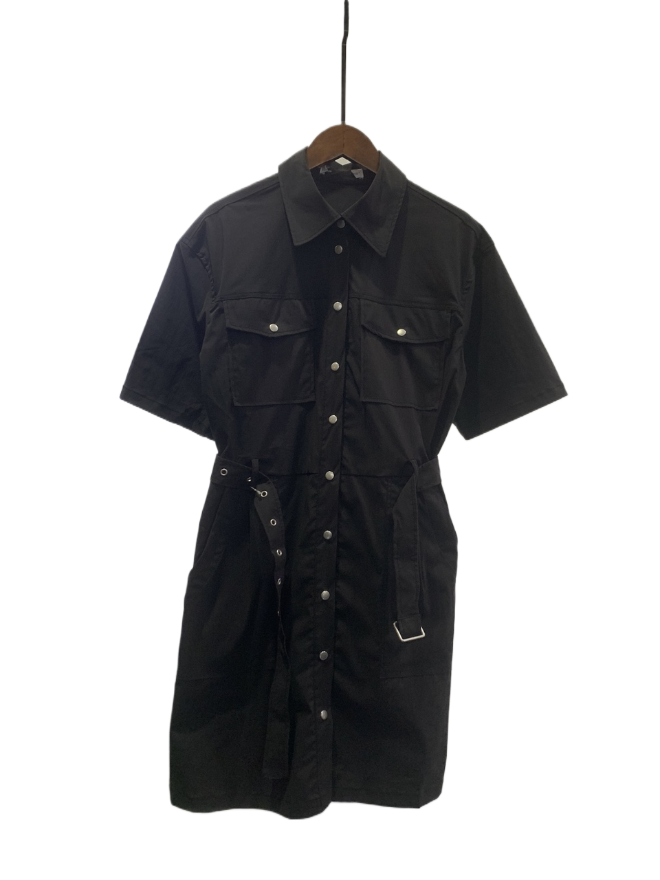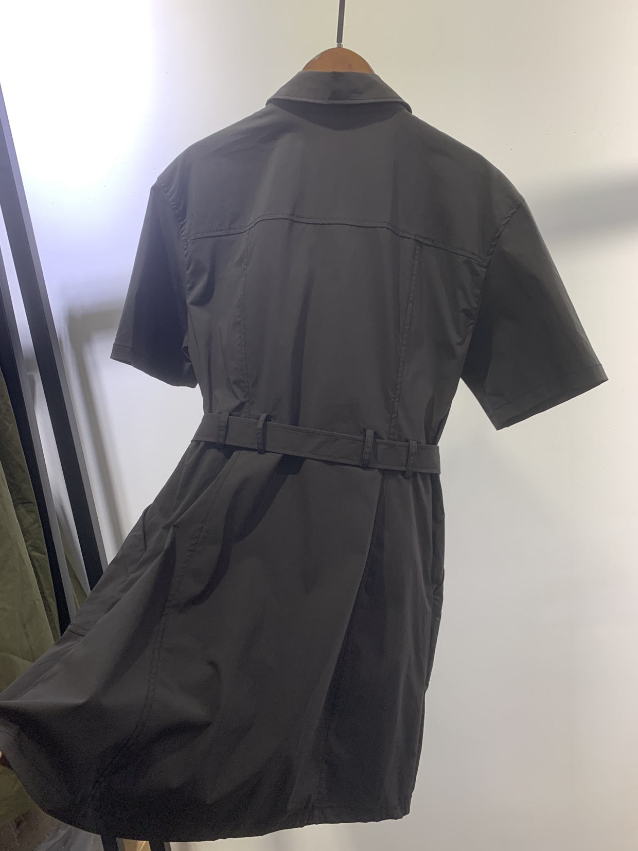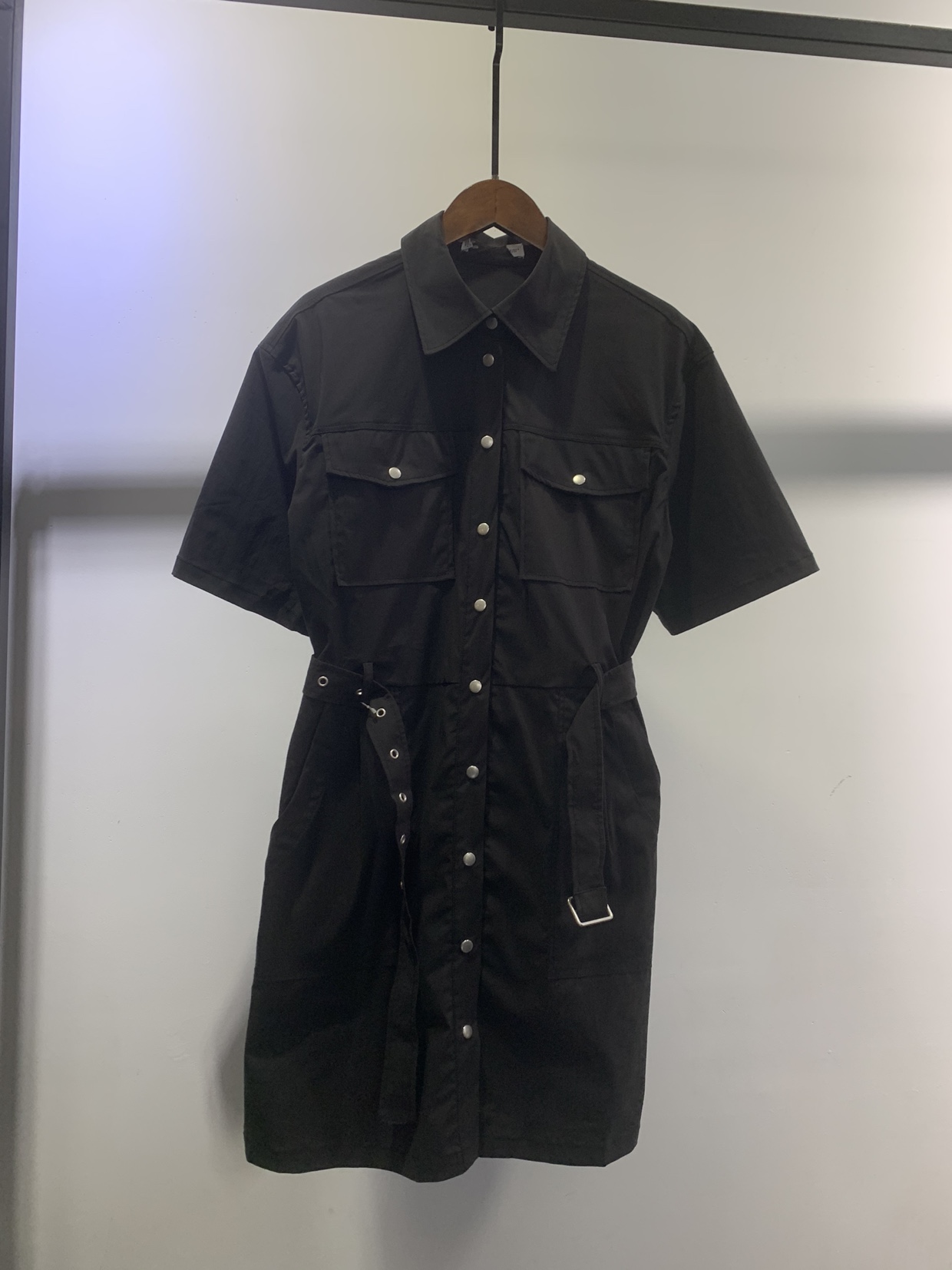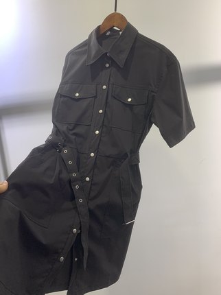 原单时尚显瘦气质短袖衬衫式单排扣系腰带连衣裙女新款春夏新品