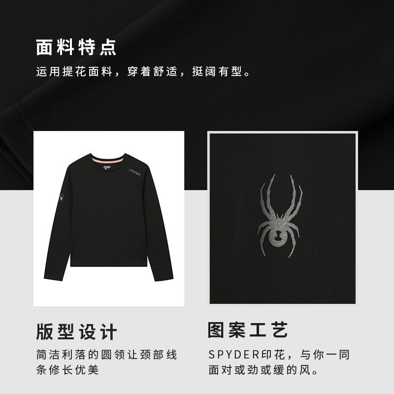 SPYDER蜘蛛春季女TRAINING透气运动户外休闲圆领长袖T恤25CS410W