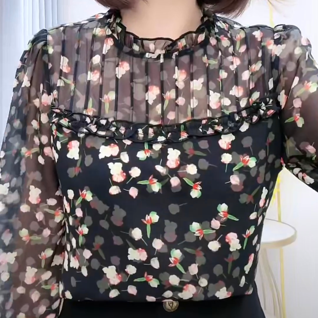 秋季时尚欧货雪纺衫女2025新款遮肚子显瘦上衣早秋款漂亮别致小衫