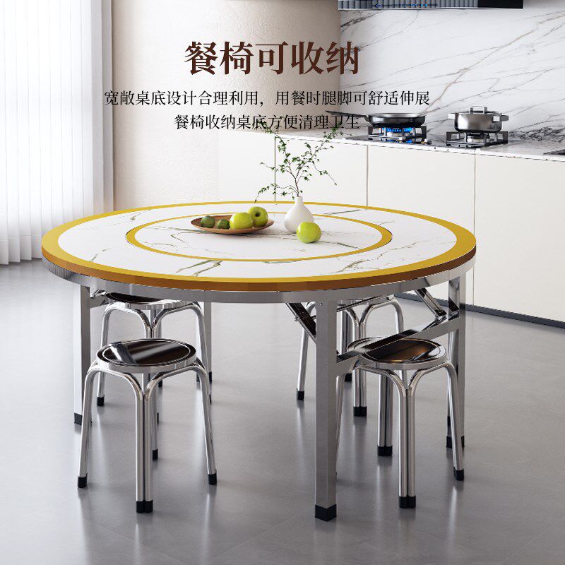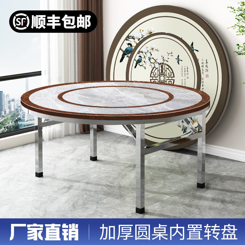 加厚不锈钢内置转盘圆桌酒席饭店餐桌可折叠户外商用彩图桌子简约