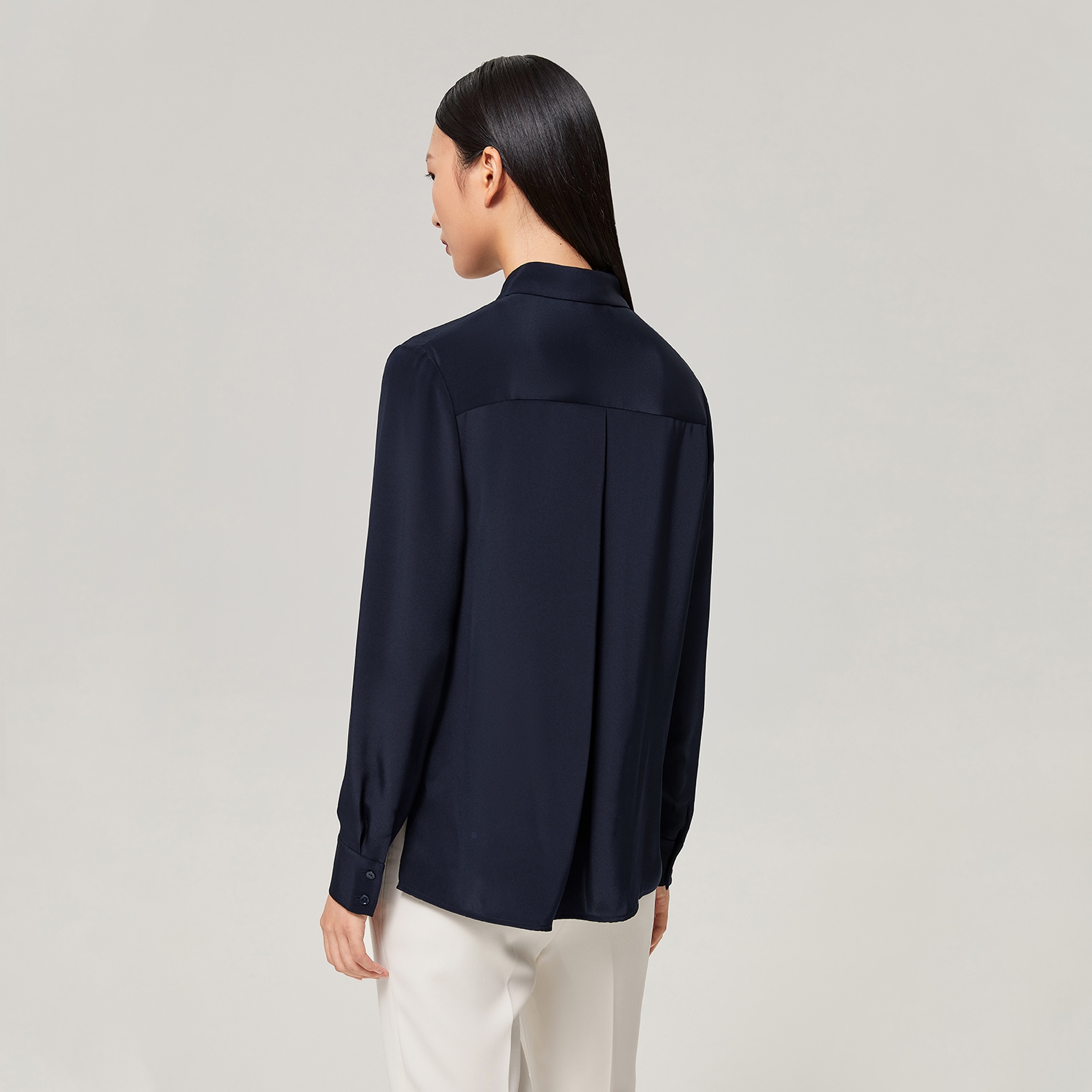 【重磅真丝】OVV秋冬女装30MM重绉V领飘带气质休闲衬衫