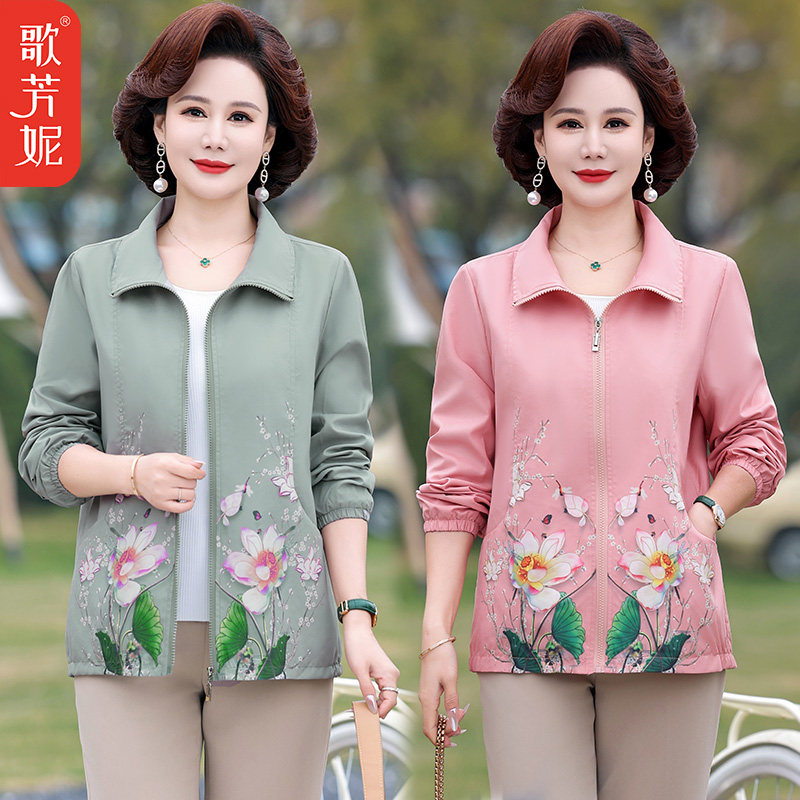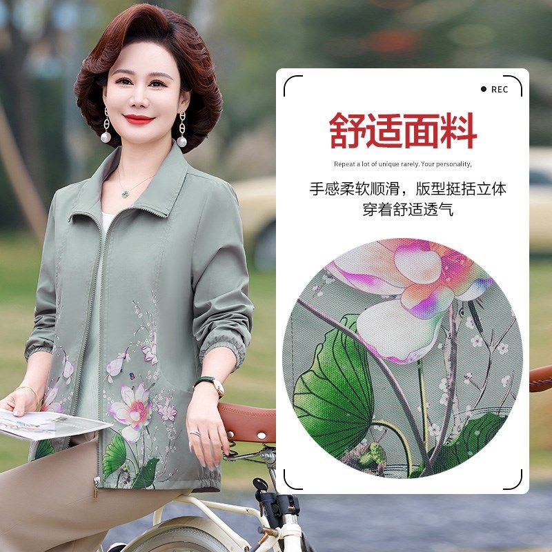 中年妈妈春装外套洋气夹克衫短款风衣中老年女装春秋2024新款上衣