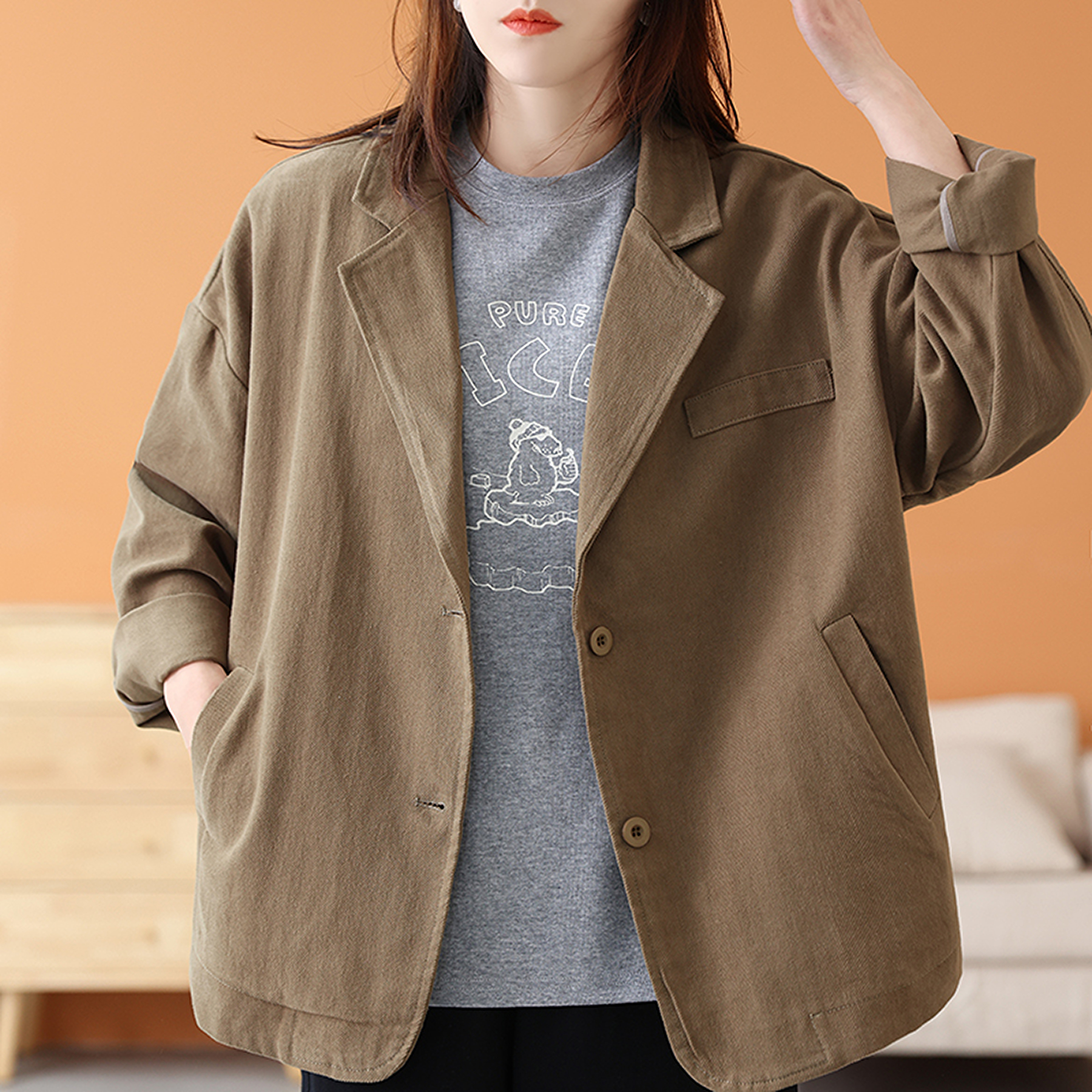 绿素棉 职场精英 通勤纯棉西装外套 春秋宽松大码休闲外披 新款