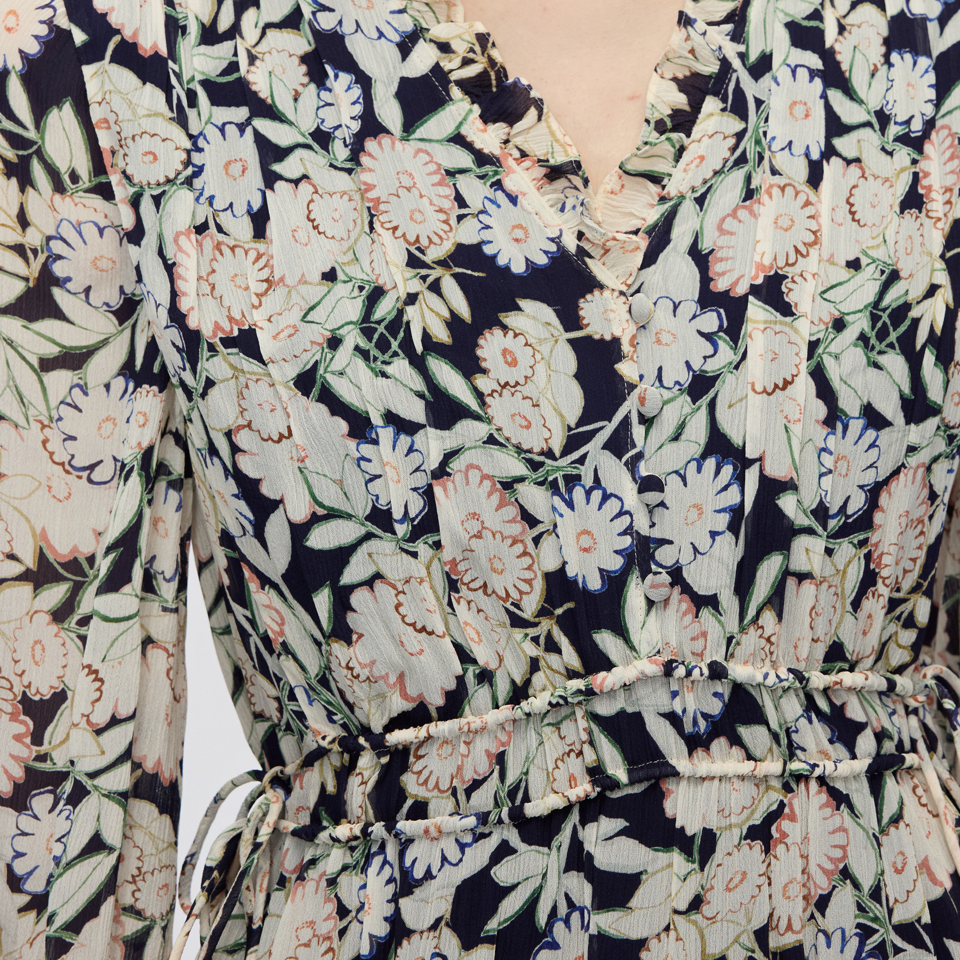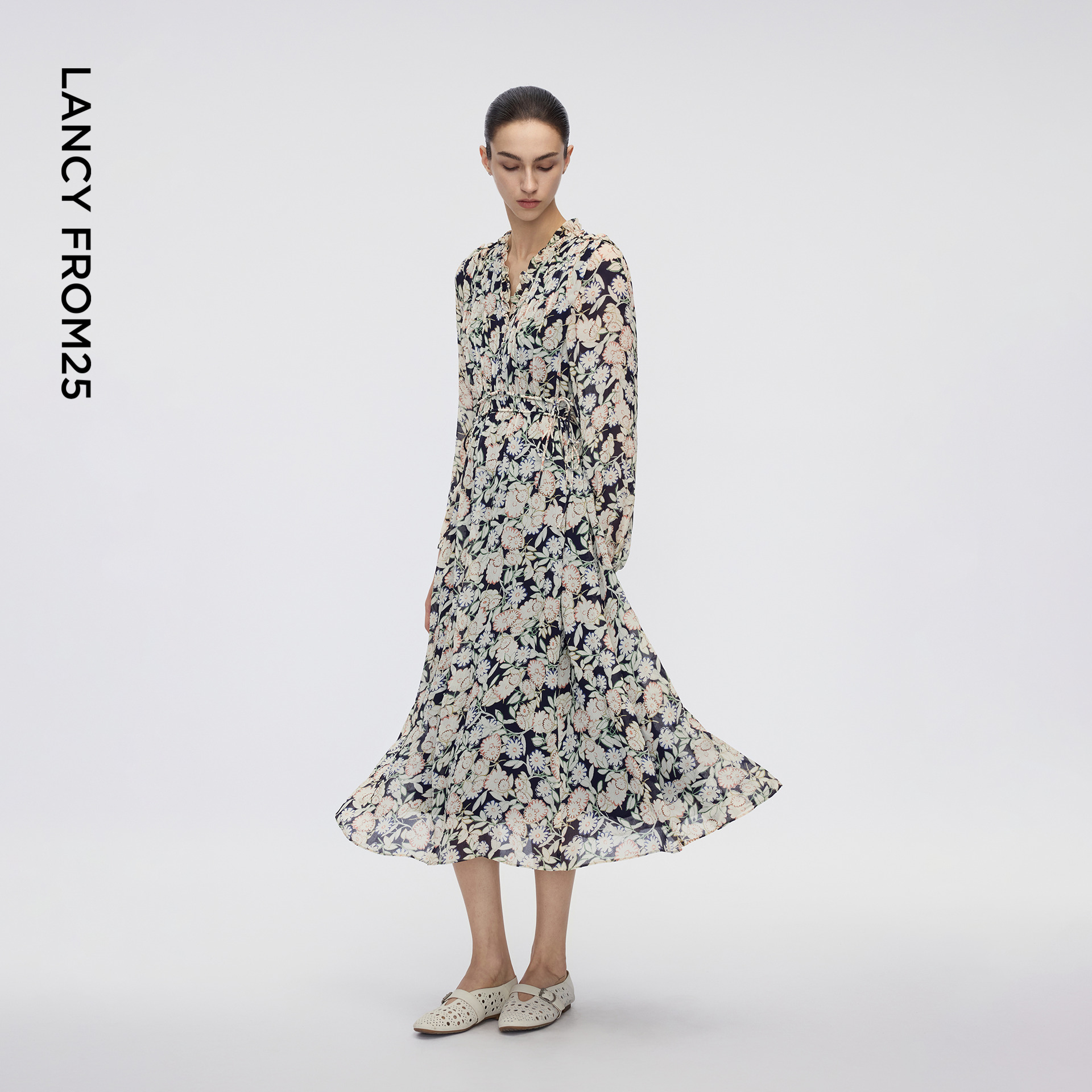 朗姿法式V领设计感连衣裙碎花修身印花浪漫裙子2025年冬季新款