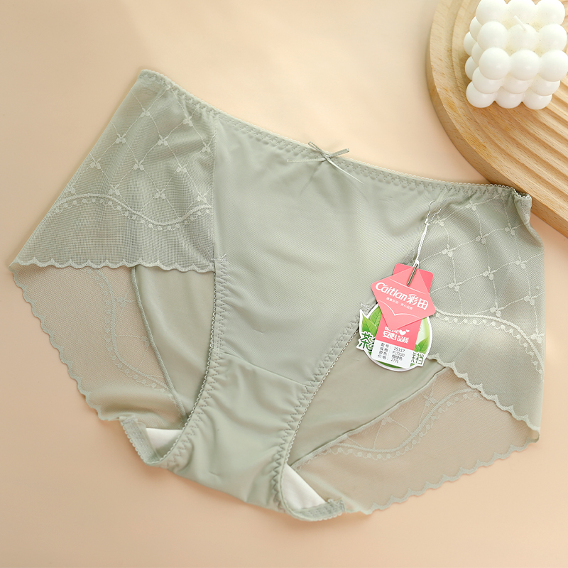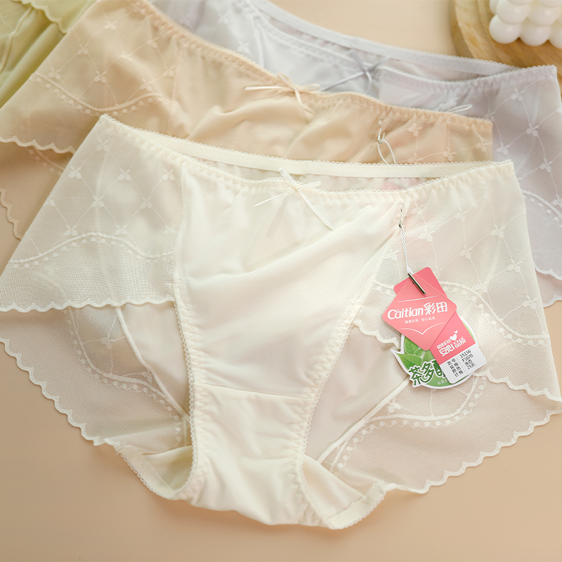 彩田内裤女15156中腰性感蕾丝网纱冰丝茶多酚抑菌裆短裤高腰15157