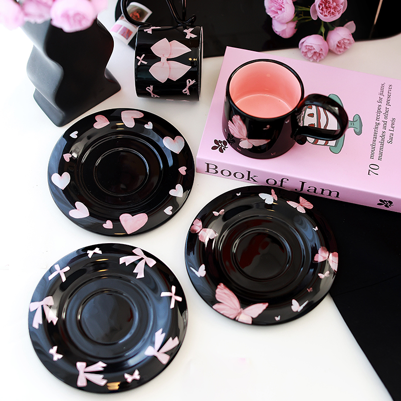 创意蝴蝶陶瓷咖啡杯碟轻奢高颜值下午茶喝水杯送女生闺蜜伴手礼品