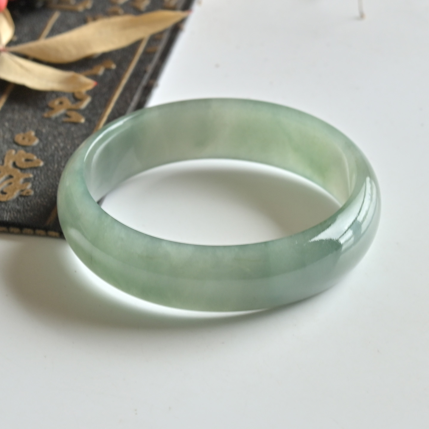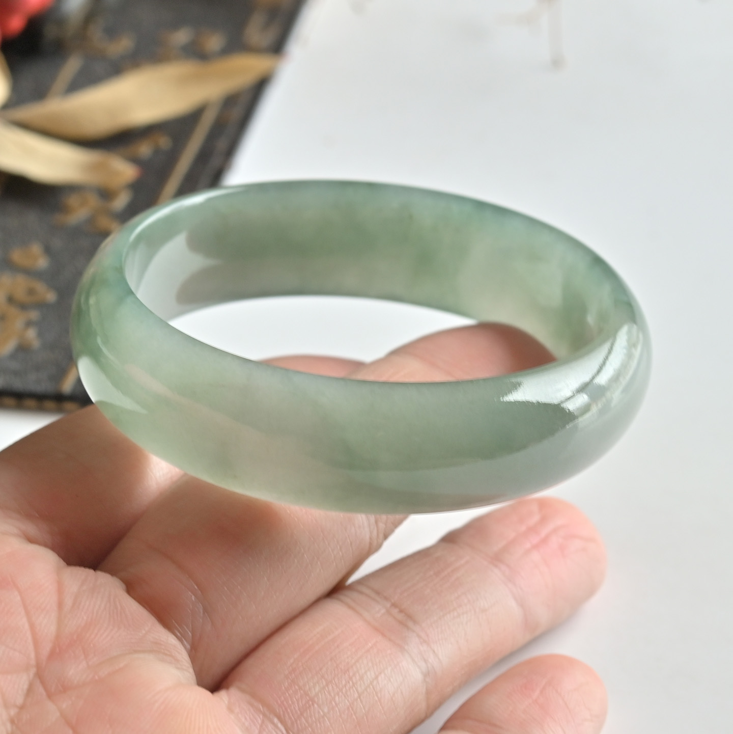 清仓天然A货翡翠手镯冰种油绿玉镯子女款56.5老坑缅甸玉石手镯