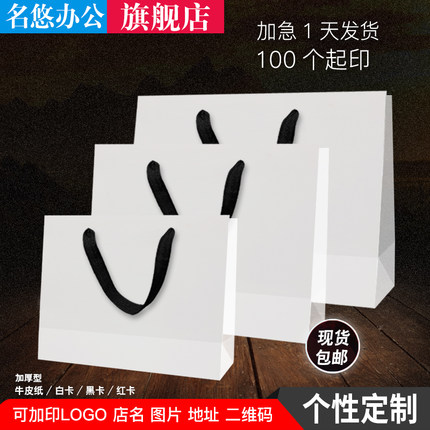 手提袋纸袋定制服装店礼品袋简约包装袋加厚男装白色定做印刷袋子