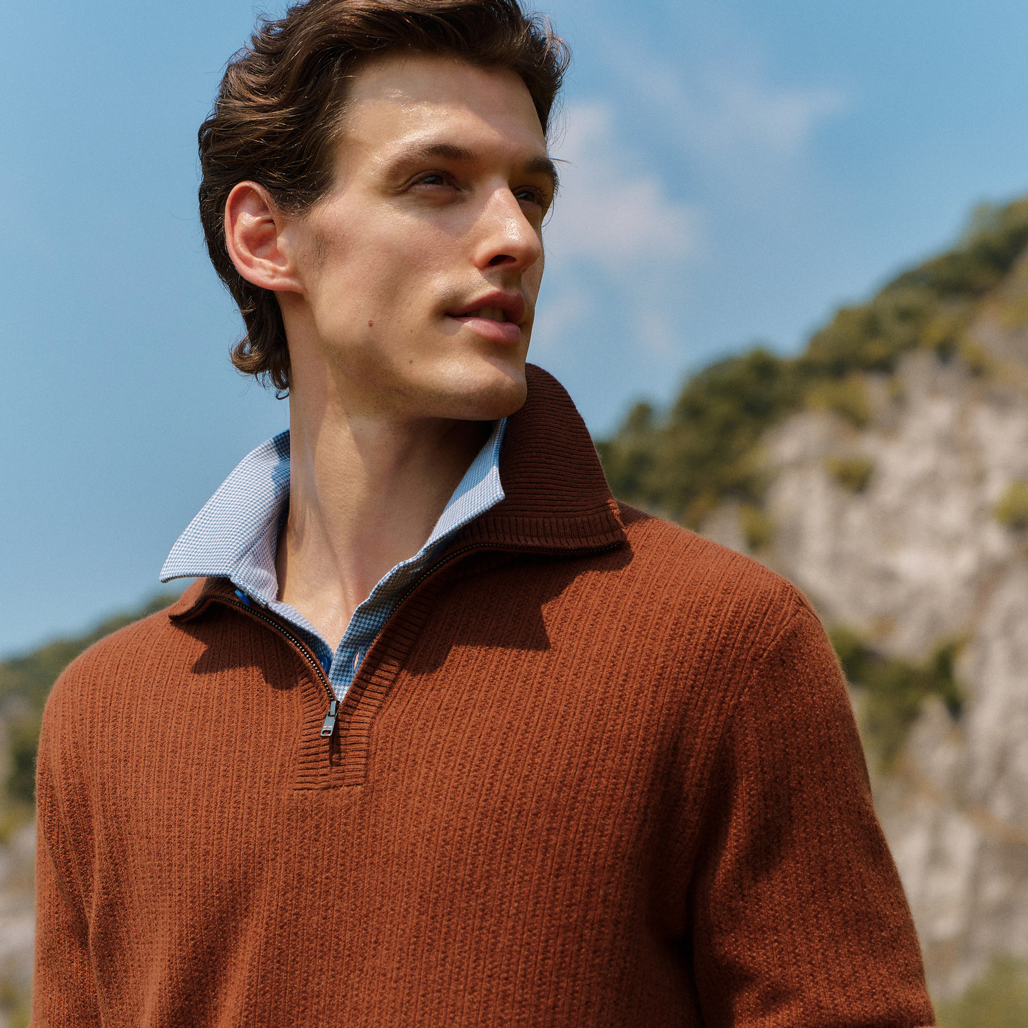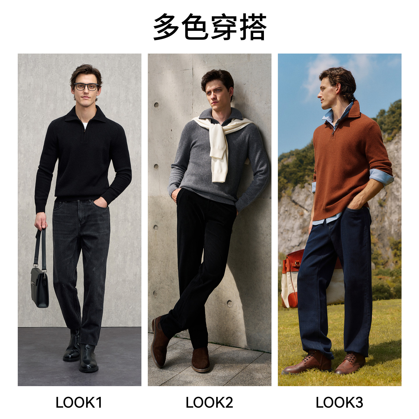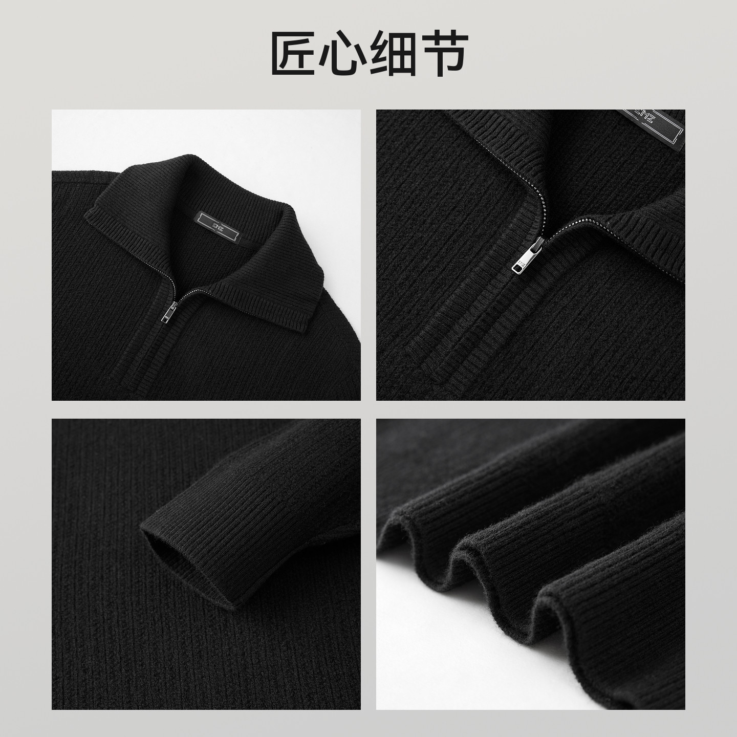 【羊毛羊绒】EMZ鄂尔多斯秋冬新款翻领半拉链老钱风针织衫毛衣男