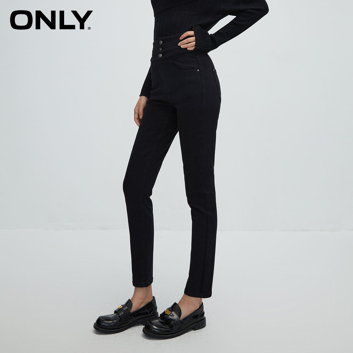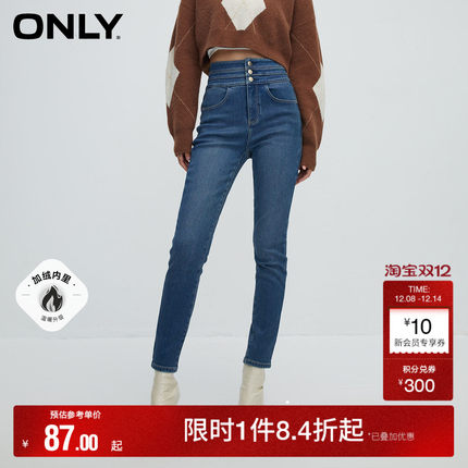 【ONLY奥莱】冬季通勤风加绒高腰紧身九分牛仔裤仔裤女