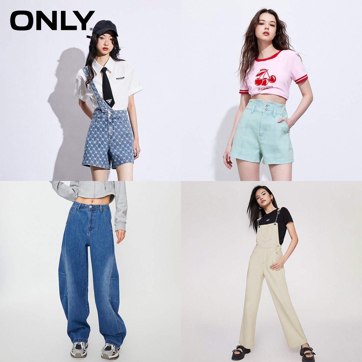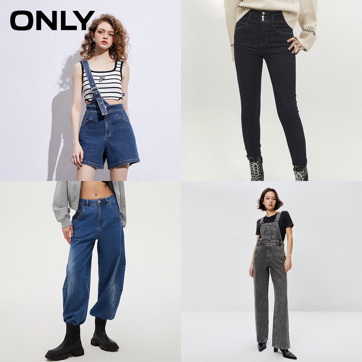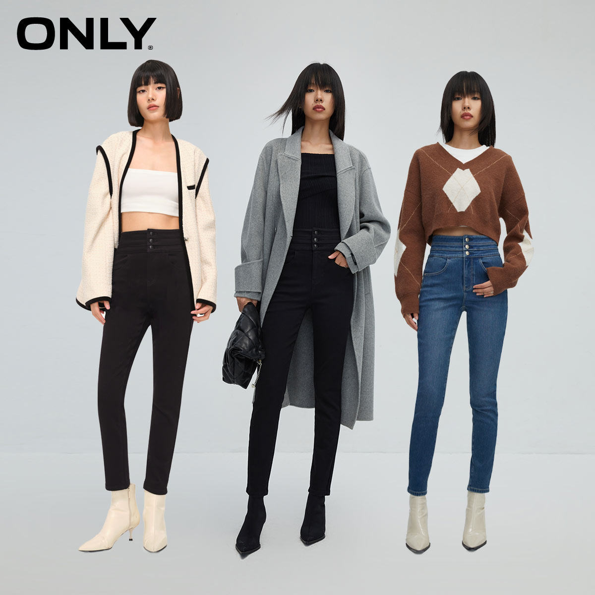ONLY通勤风加绒高腰九分牛仔裤