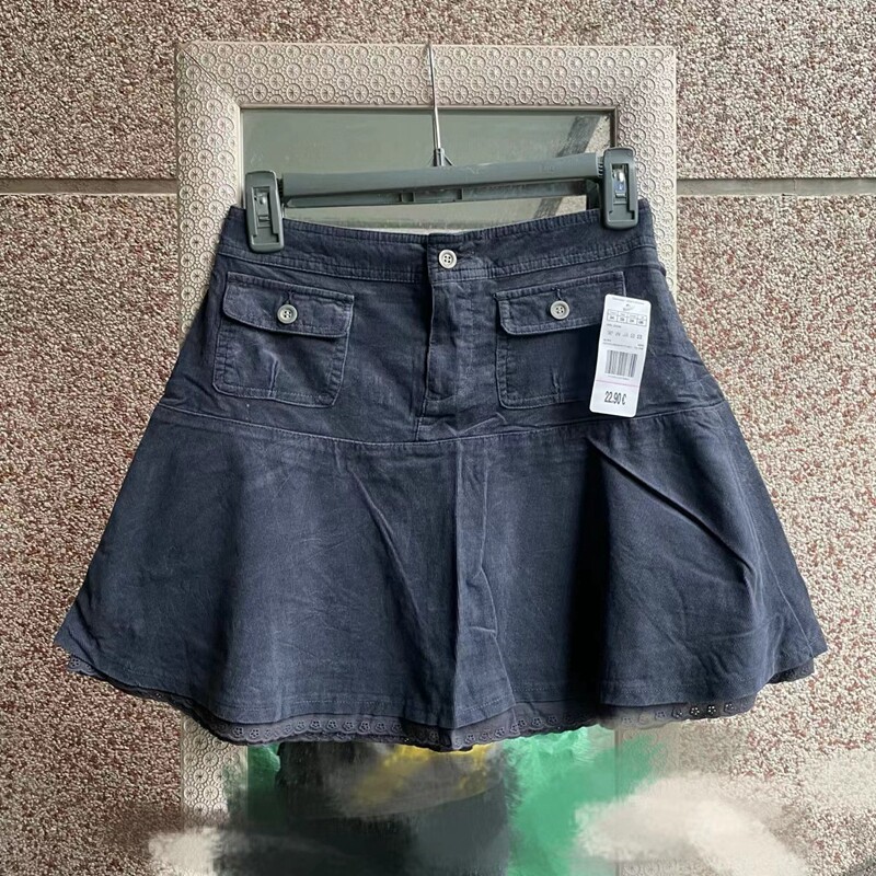 辣妹外贸纯棉工装短裙纯欲口袋辣妹工装短裙蕾丝花韩系百搭半身裙
