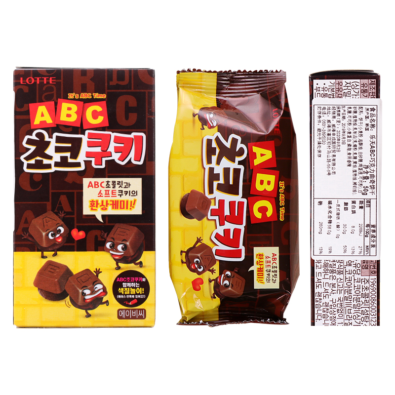 新品乐天ABC巧克力曲奇饼干50g韩国原装进口零食办公室休闲儿童