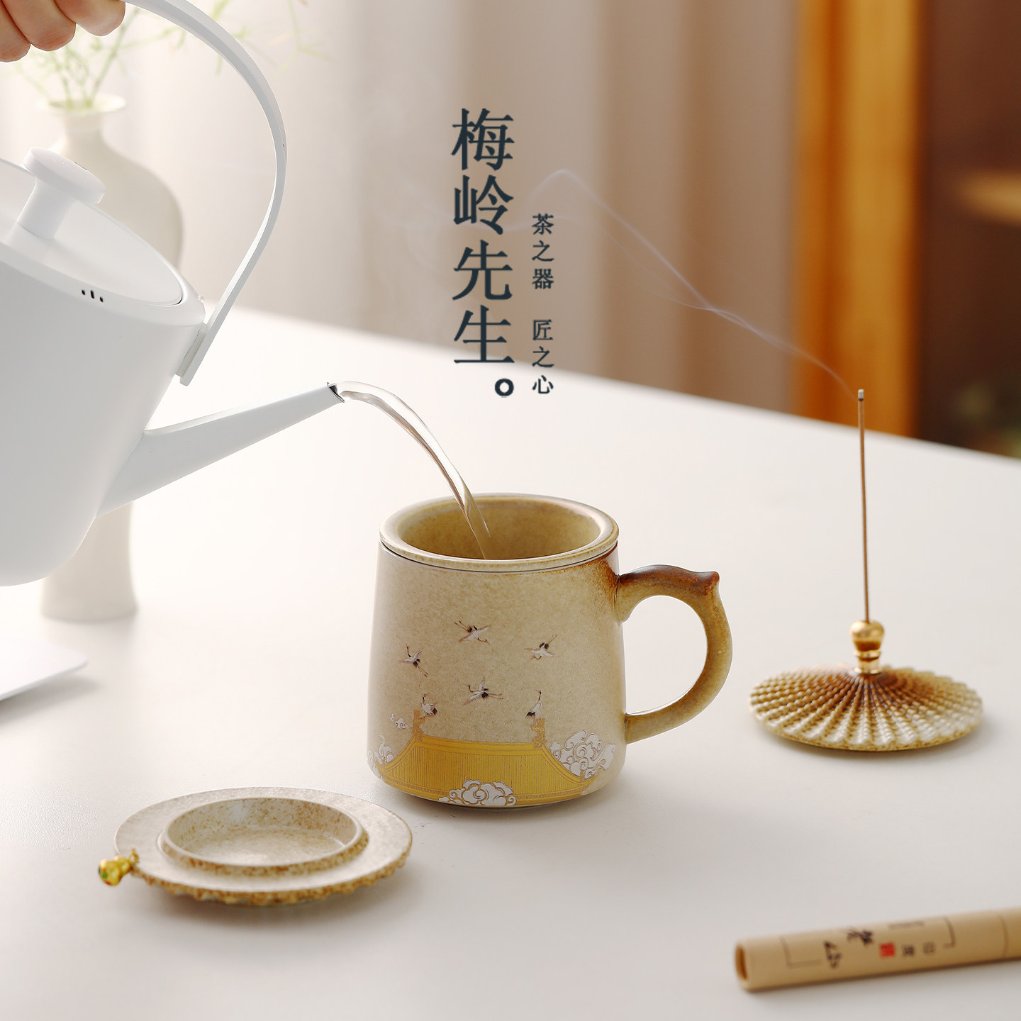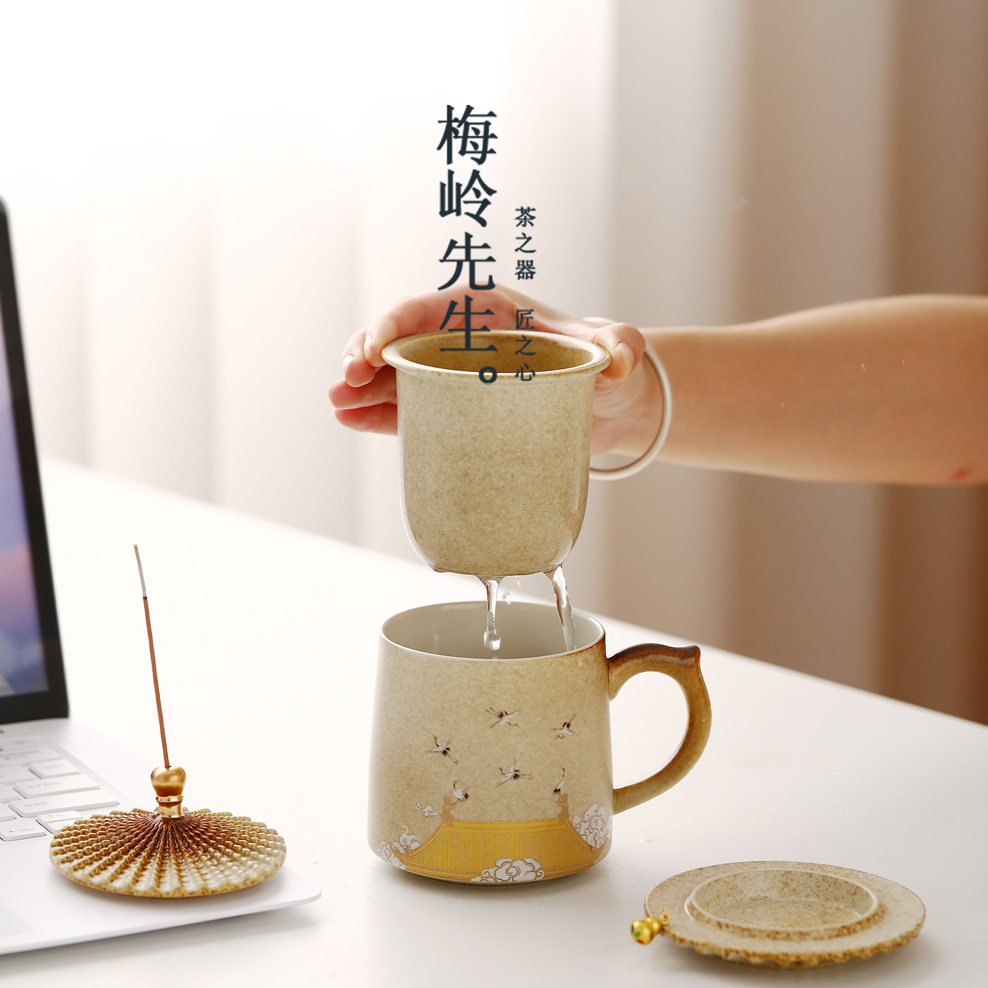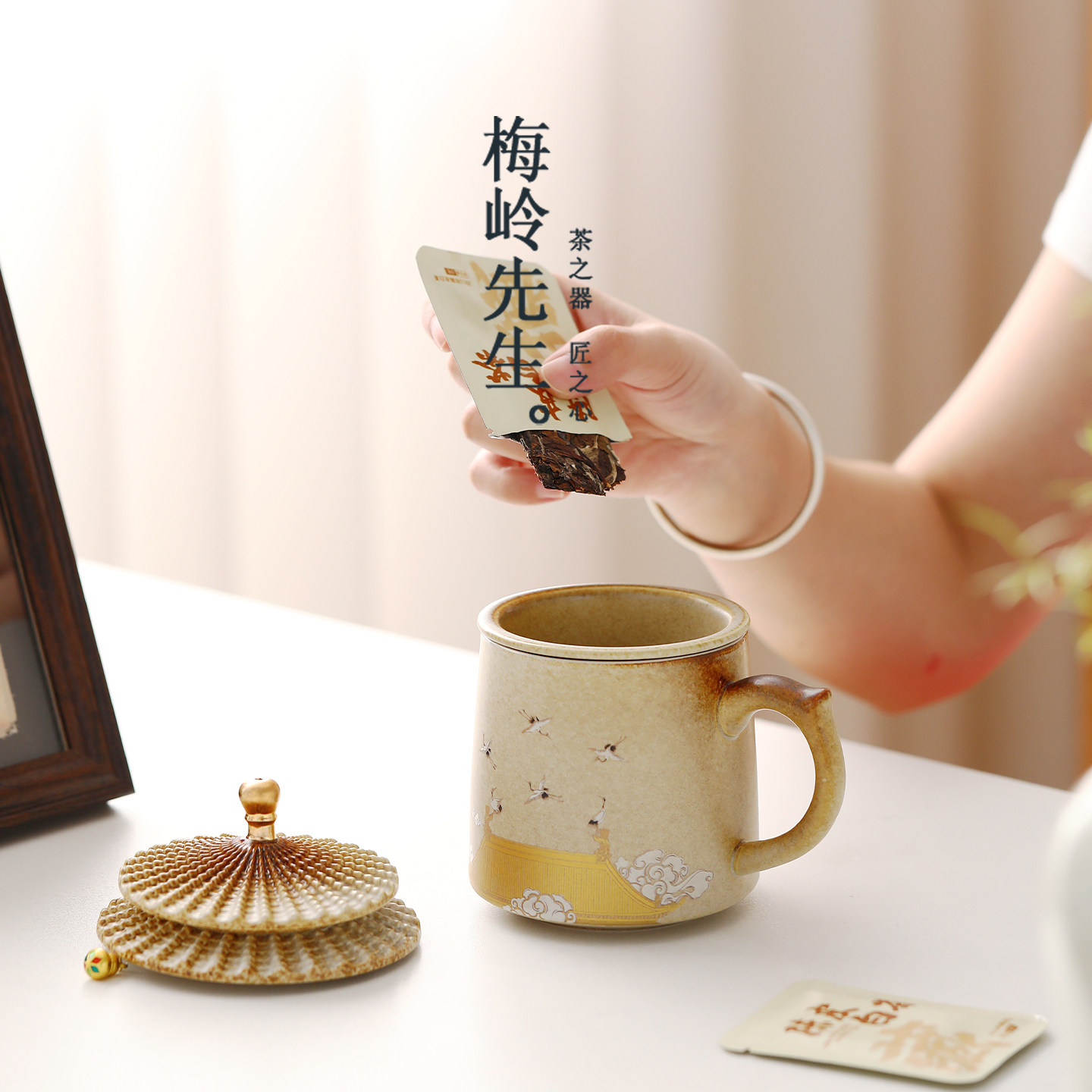 故宫文创仙鹤龙陶瓷泡茶杯马克杯带盖过滤水杯送老师男士生日礼物
