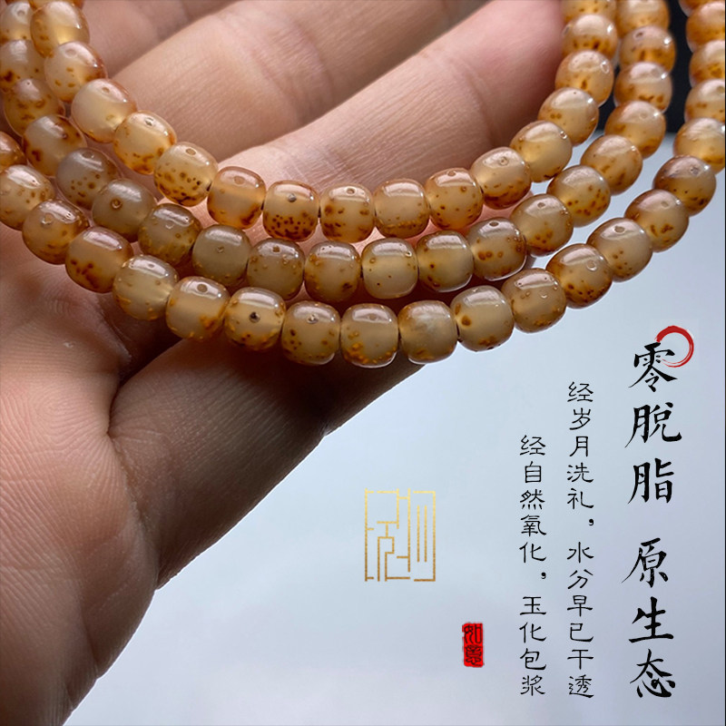 孤品级海南玉化籽果冻粉皮星月菩提108颗高抛桶文玩男女手串项链