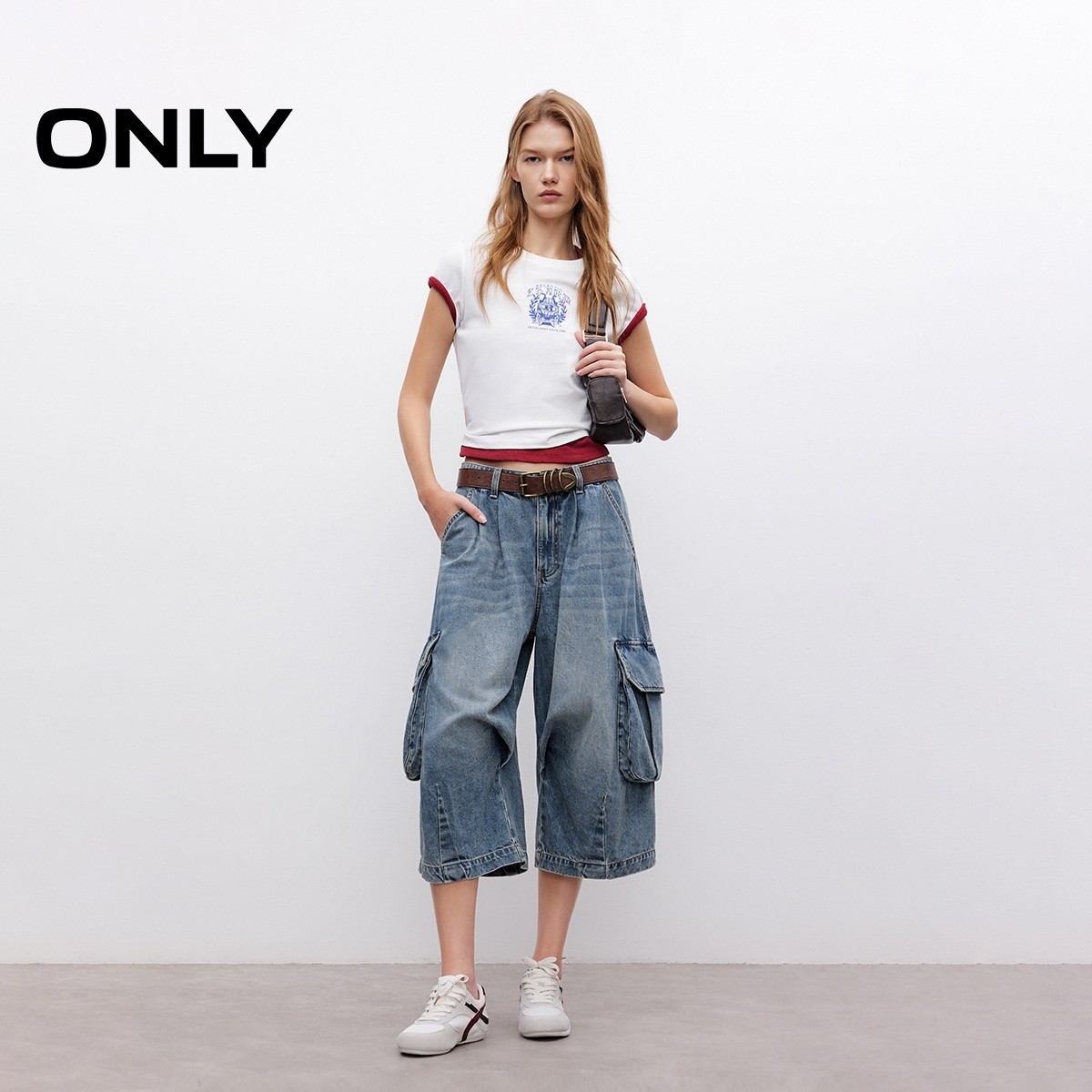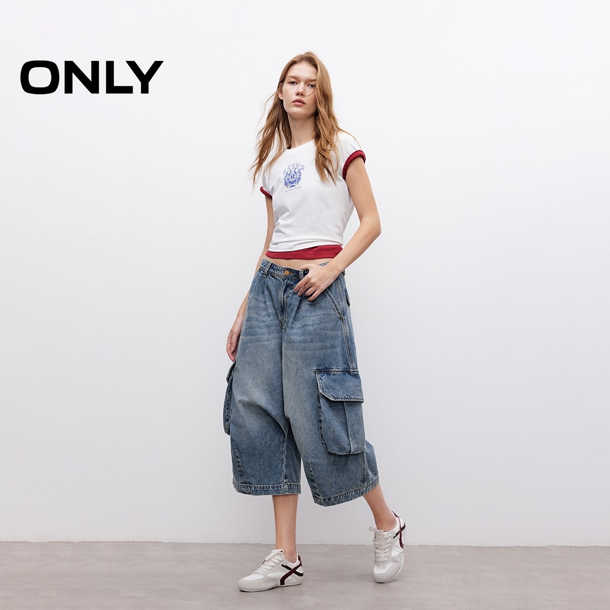 ONLY2025冬新款酷感口袋装饰设计低腰短裤牛仔裤女|125343003