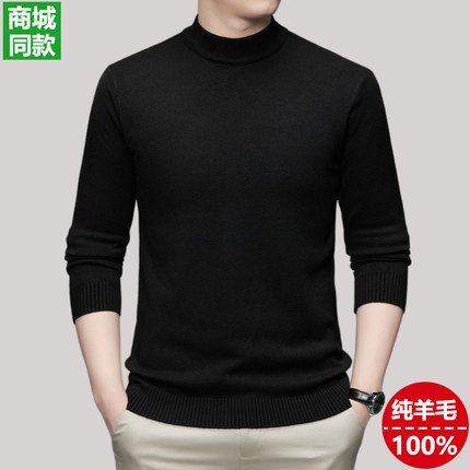 鄂尔多斯市秋冬季100%纯羊毛休闲保暖男士半高领纯色长袖针织衫