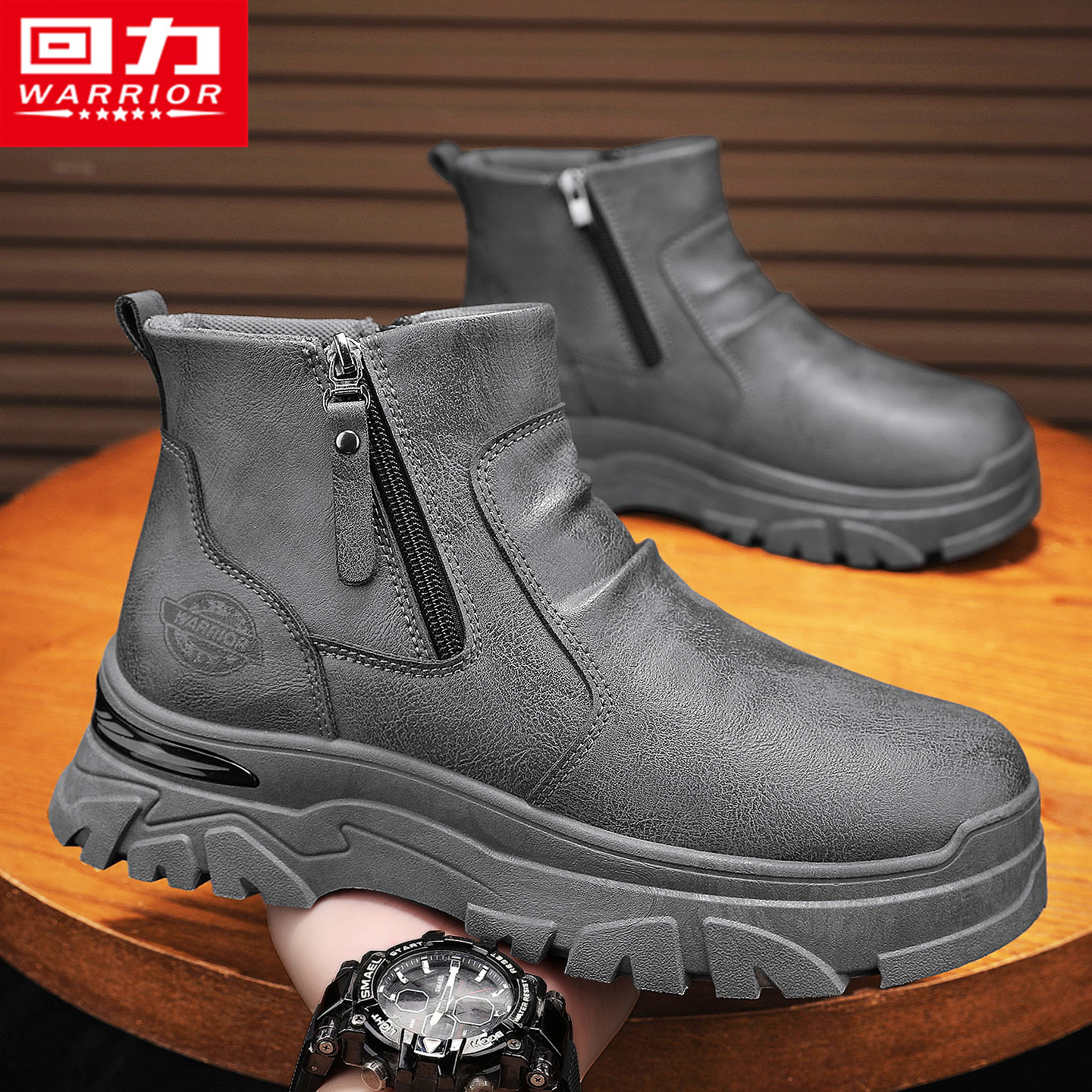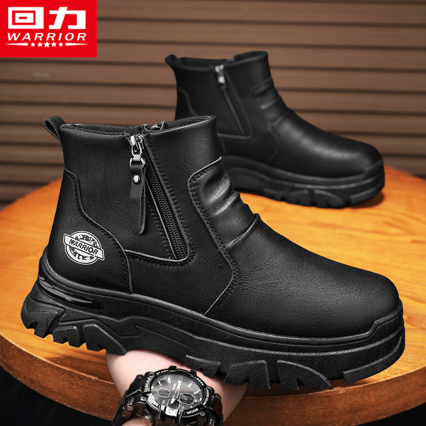 回力马丁靴男秋季英伦复古运动高帮皮鞋侧拉链美式户外防水工装靴
