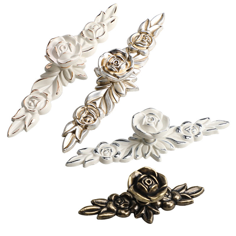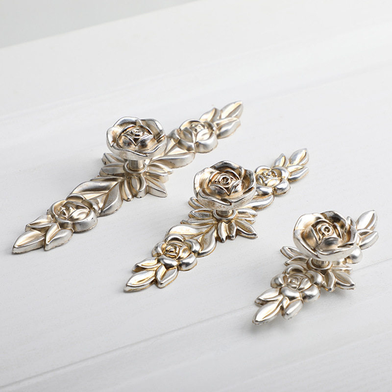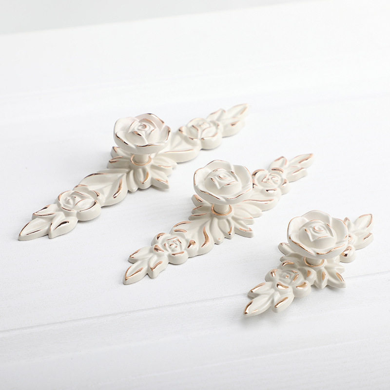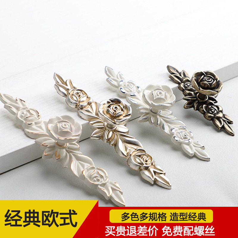 象牙白拉手欧式烤漆柜门拉手现代家具把手单孔银白色玫瑰花小拉手