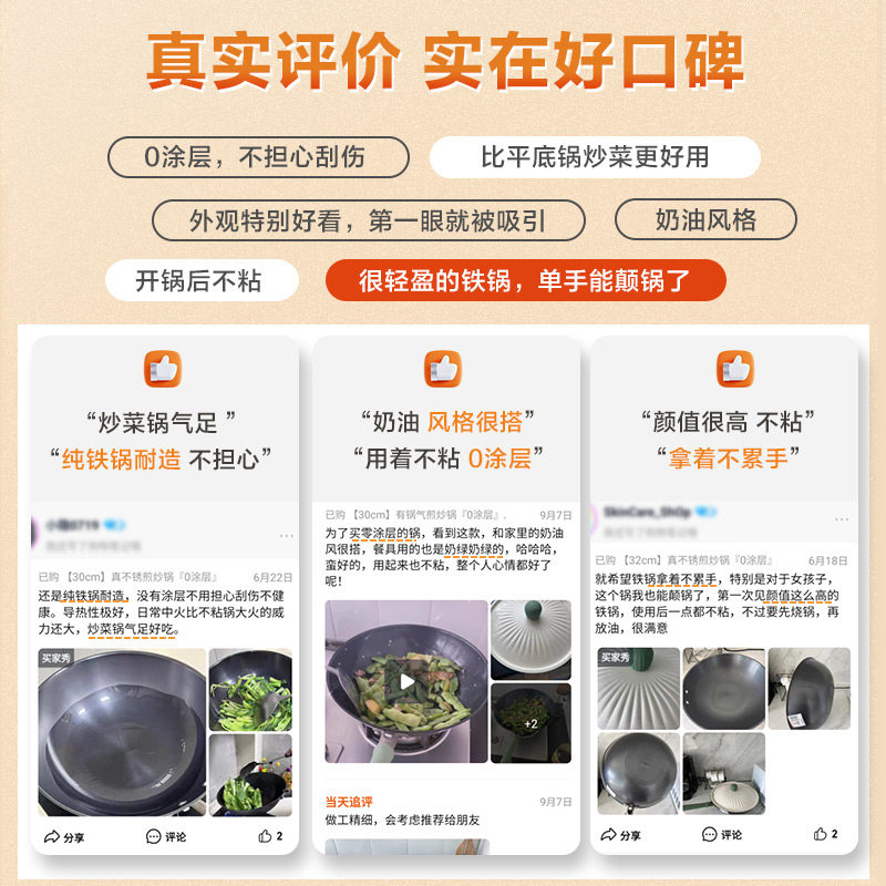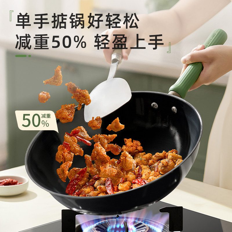 爱仕达女士轻量铁锅炒菜锅家用无涂层电磁炉燃气专用熟铁平底炒锅
