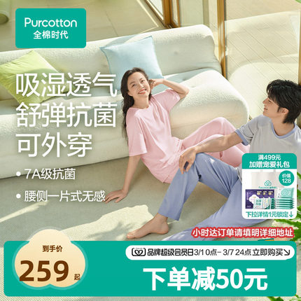 全棉时代男女情侣睡衣抗菌家居服套装T恤款春夏款睡衣套头可外穿