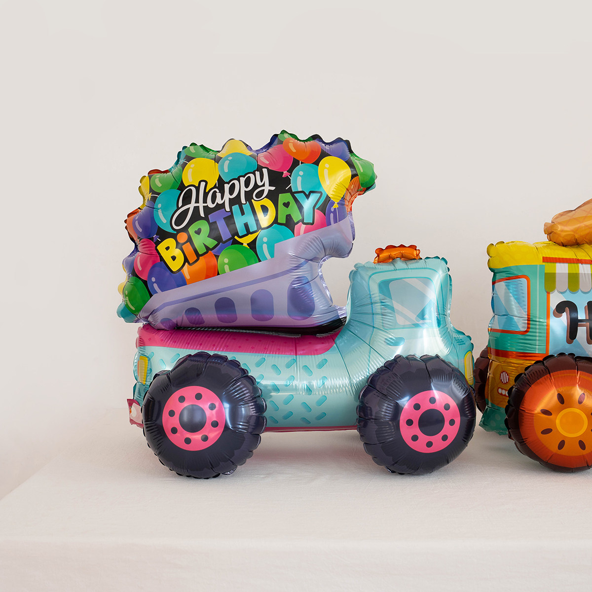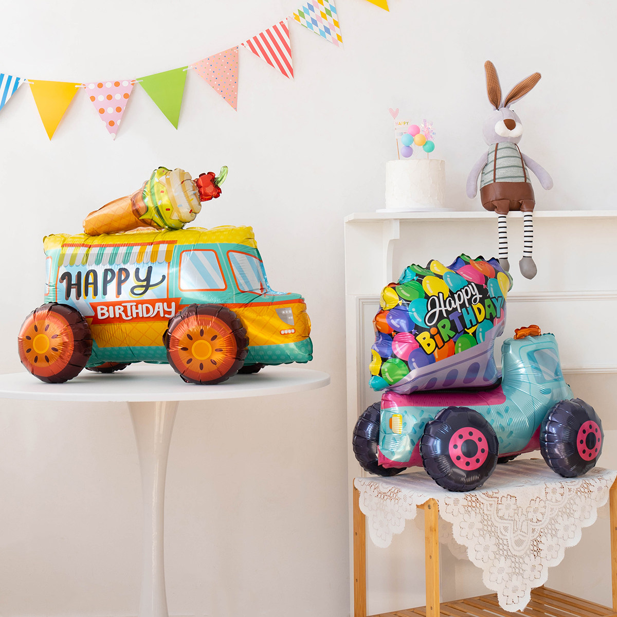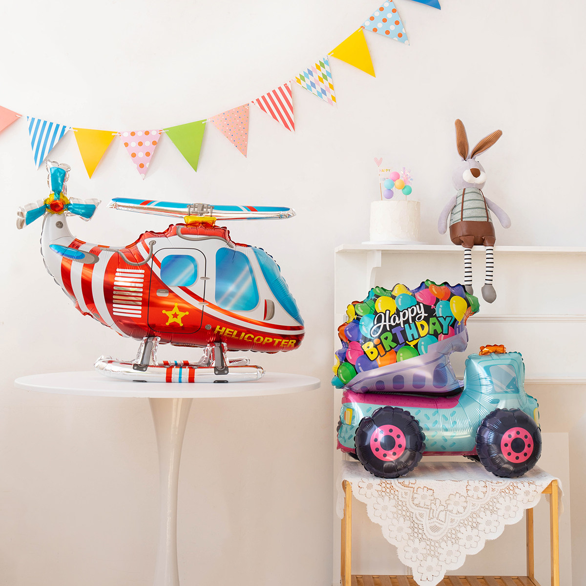 卡通汽车铝膜气球男孩生日派对布置周岁儿童冰淇淋车直升机装饰品