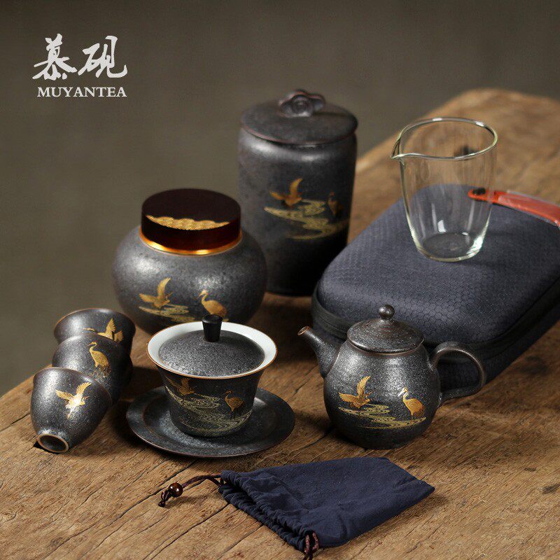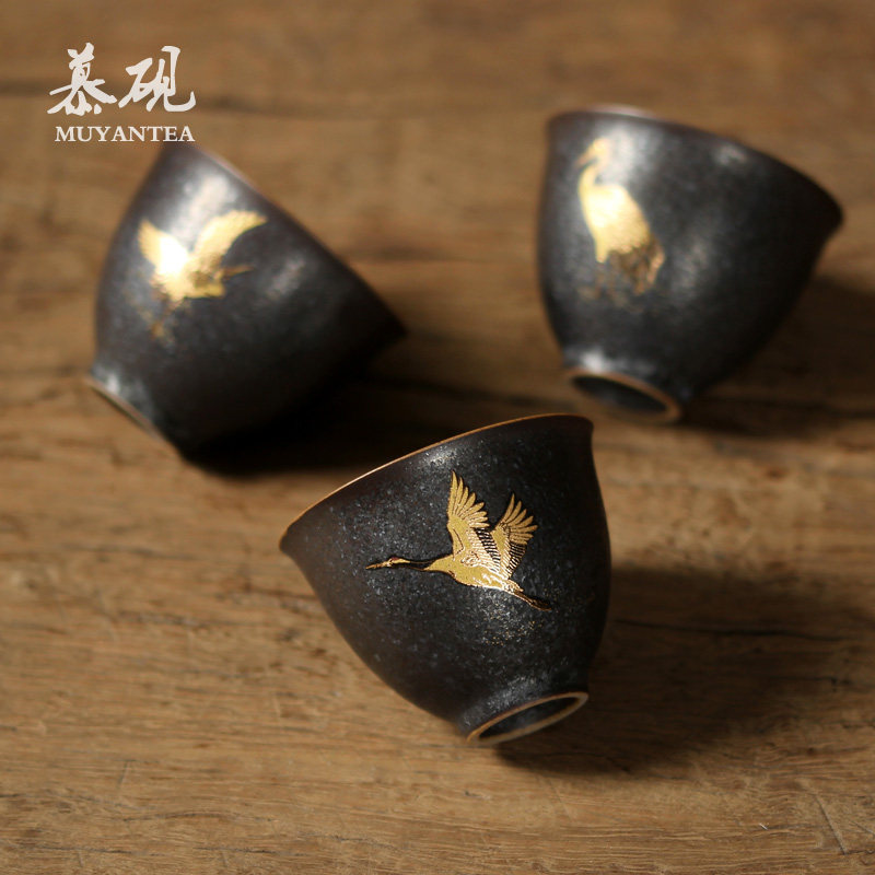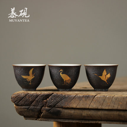 慕砚 手绘金鹤品茗杯窑变天目釉茶杯 陶瓷功夫茶具主人杯家用茶盏