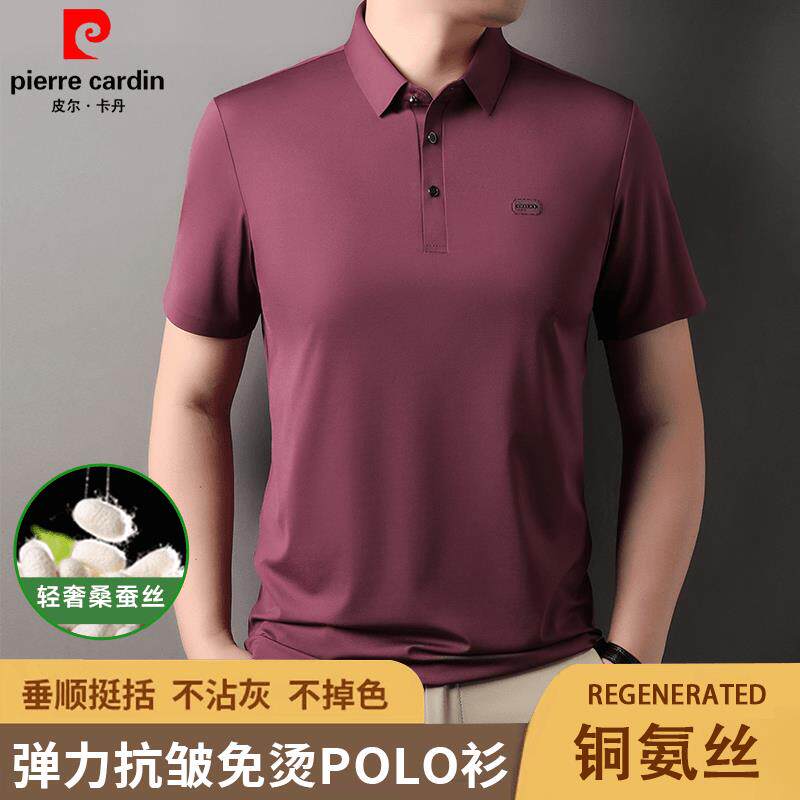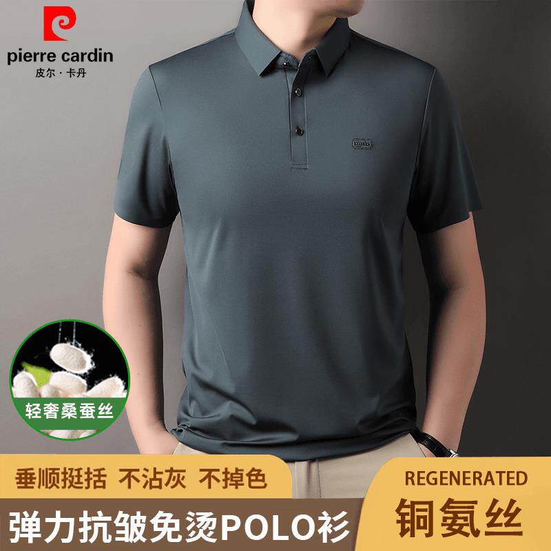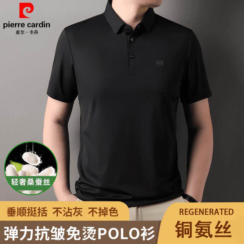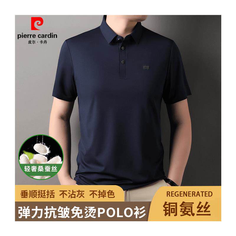 皮尔卡丹夏季新款男士桑蚕丝短袖POLO衫商务休闲时尚翻领半袖t恤