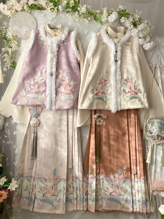 夜子溪原创【花间兔】汉服女明制圆领刺绣加绒加厚比甲秋冬日常款