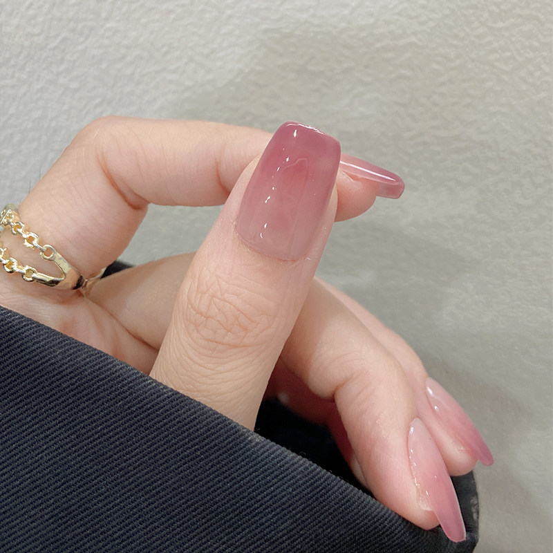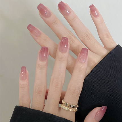 MILIMI纯手工定制穿戴甲冰透裸色乌梅渐变纯色新娘假指甲乌龙蜜桃