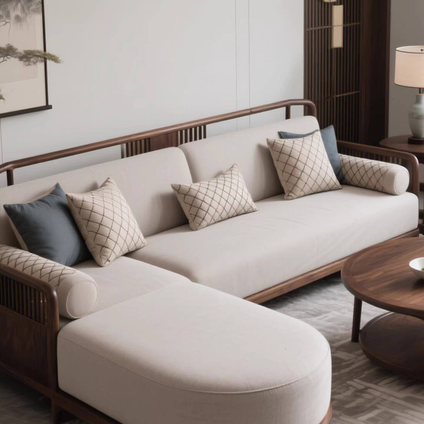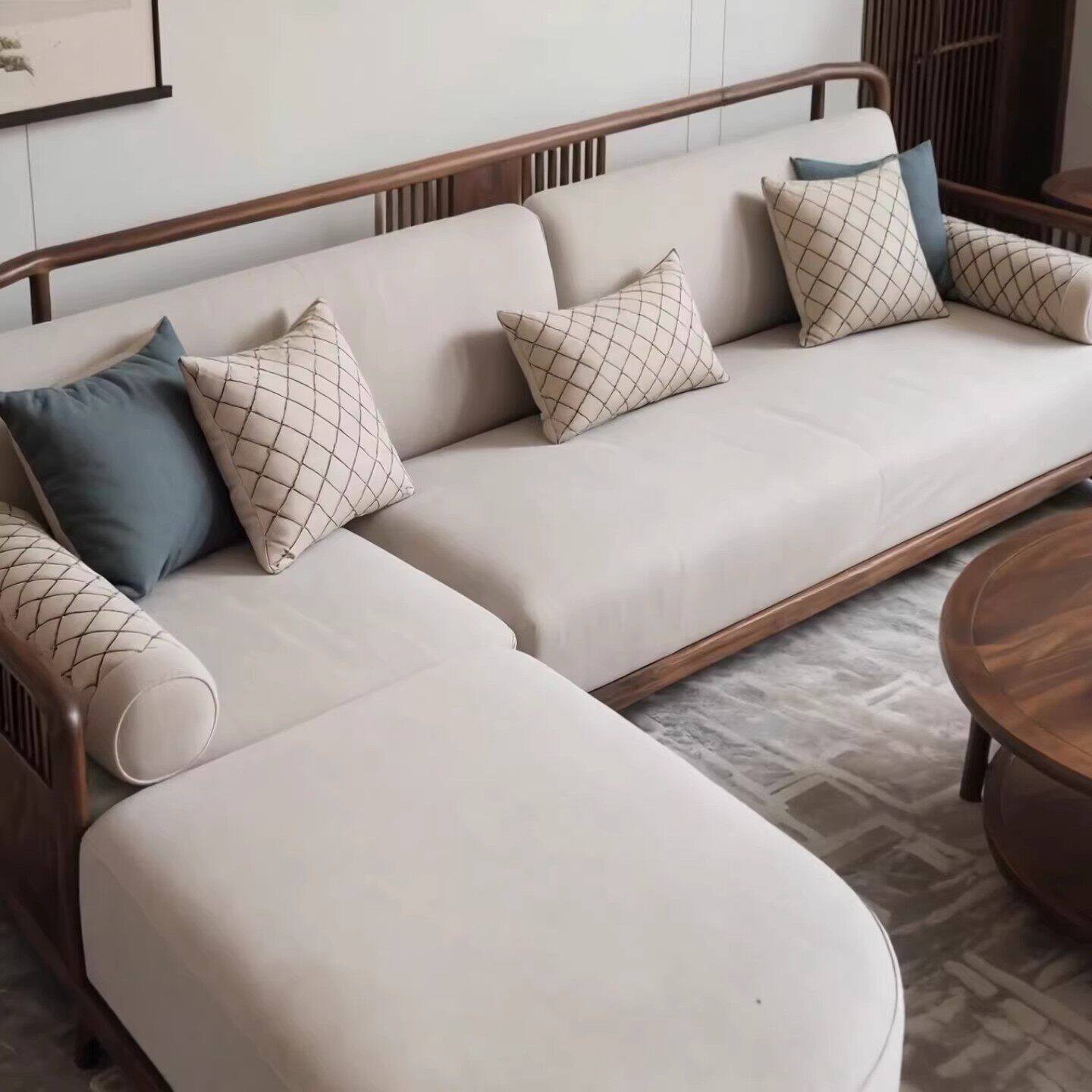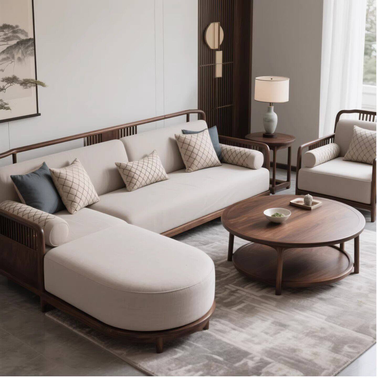 新中式北美黑胡桃木沙发2026新款转角贵妃组合家用客厅实木沙发