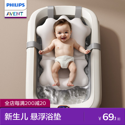 飞利浦新安怡婴儿洗澡躺托架新生宝宝海绵悬浮浴垫浴盆通用可坐躺