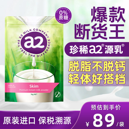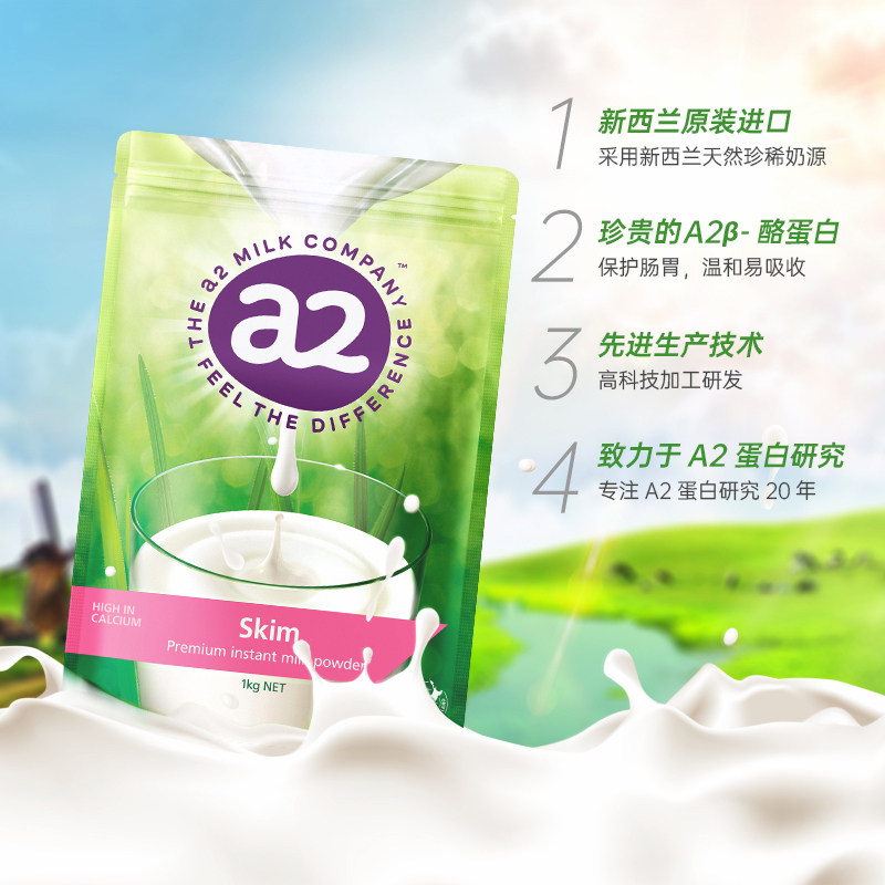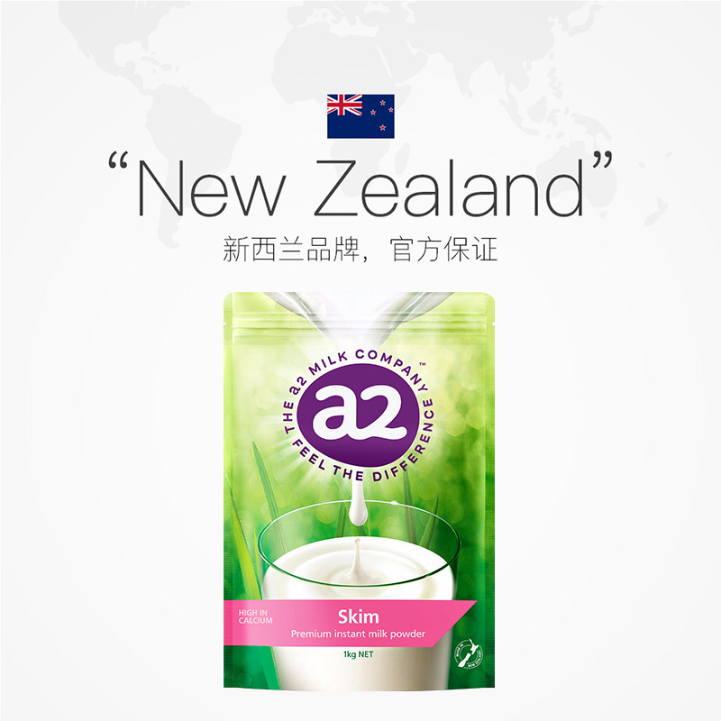 新西兰进口a2脱脂成人奶粉1kg/袋 青少年中老年高钙高蛋白奶粉