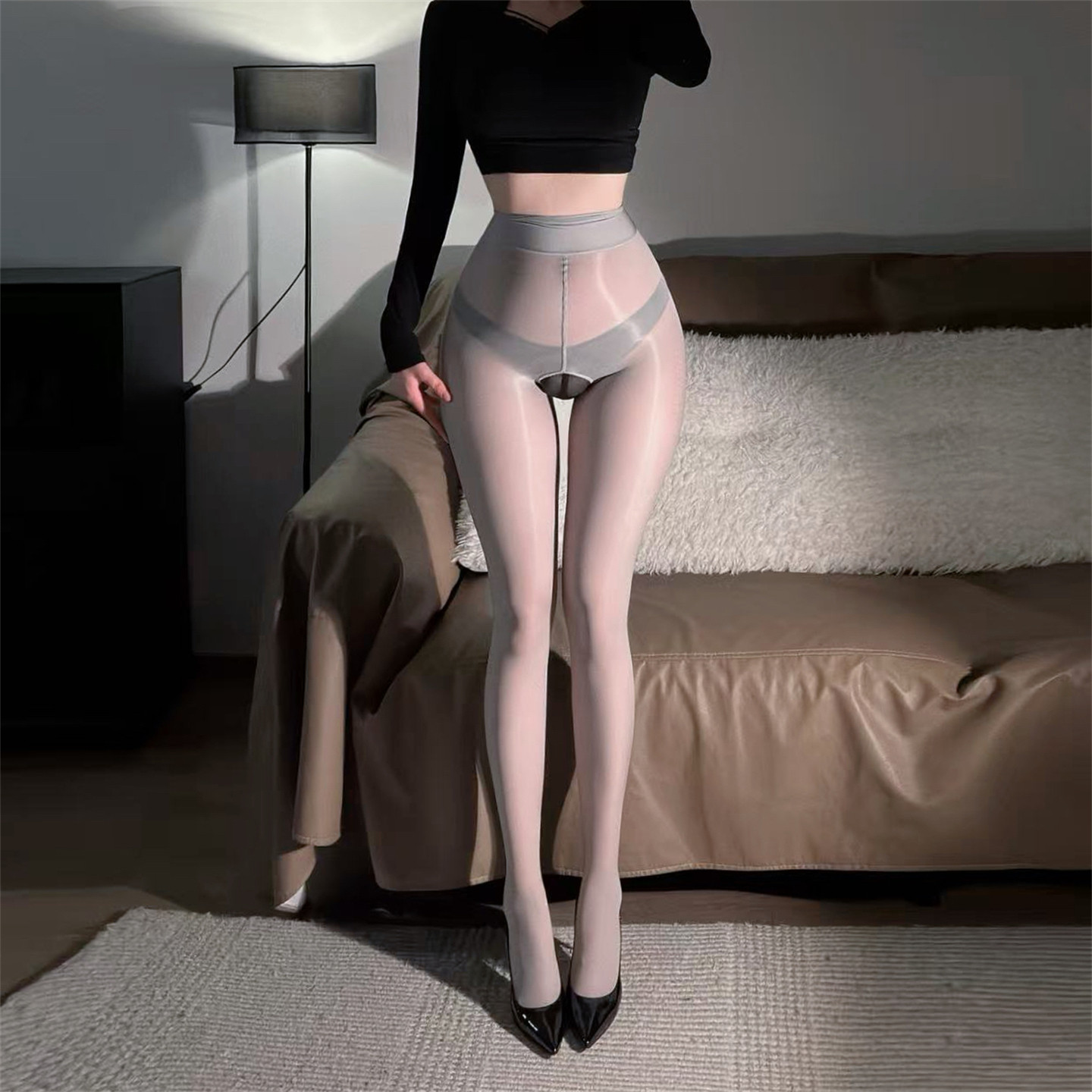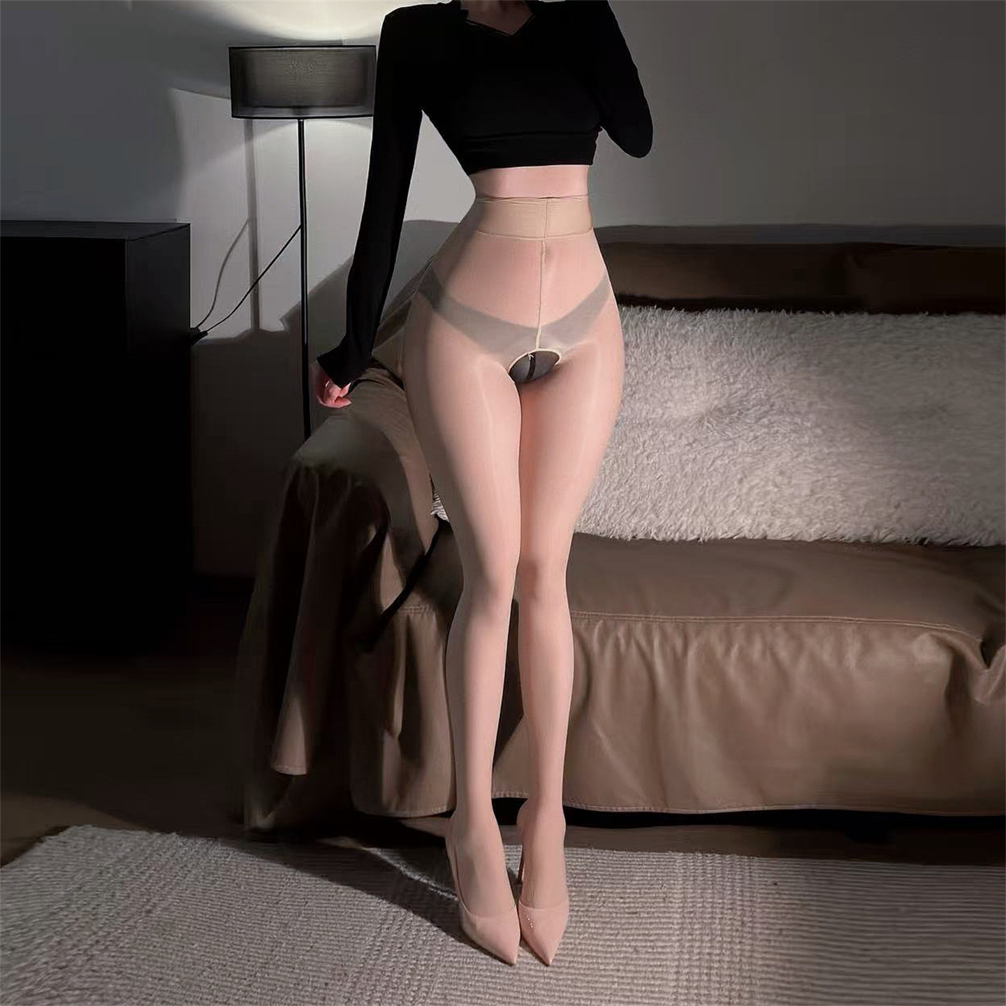912针马油袜油光珠光女薄款防勾丝显瘦开裆黑丝连裤袜高弹不掉档