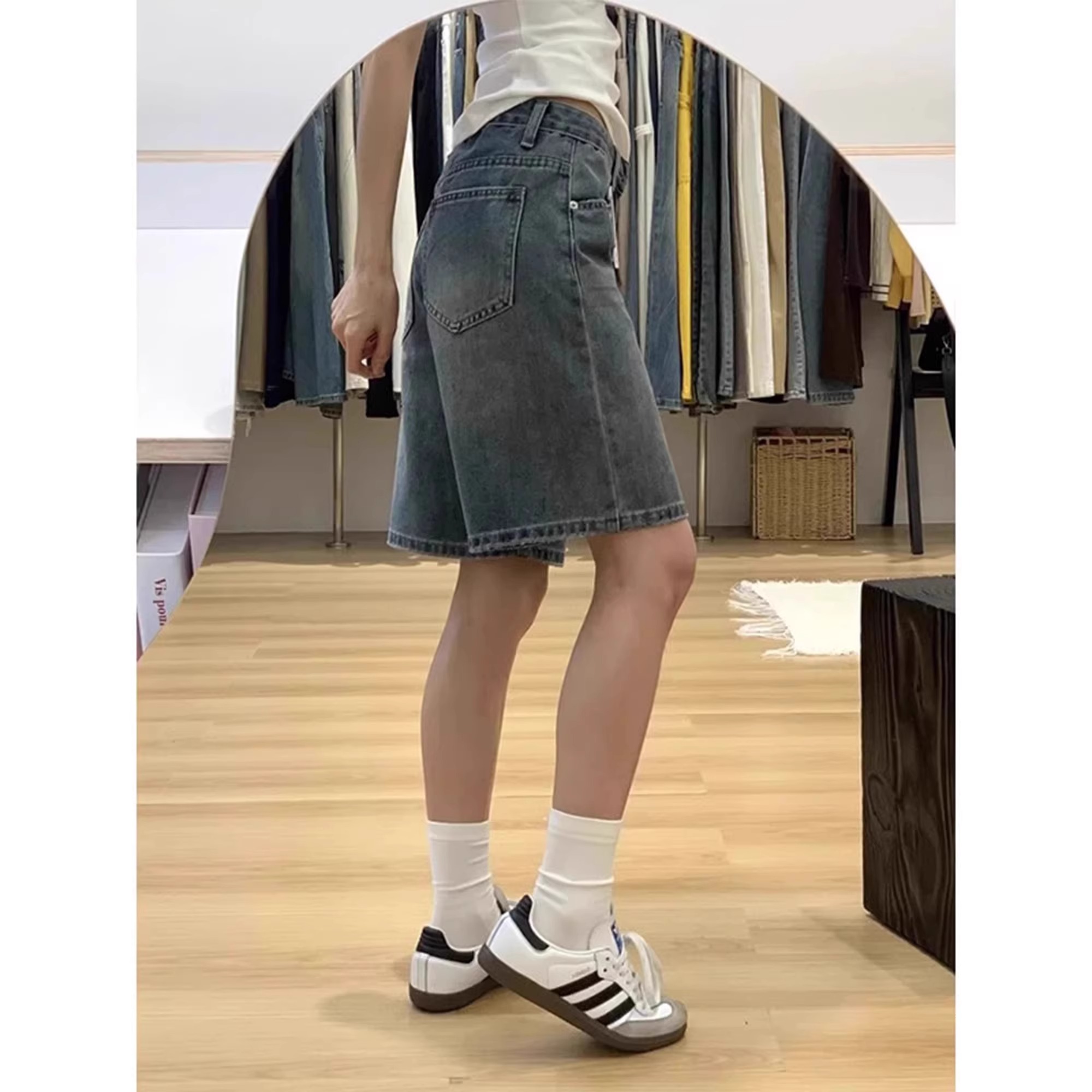薄款怀旧复古高腰阔腿五分牛仔短裤女梨形身材宽松显瘦直筒中裤夏