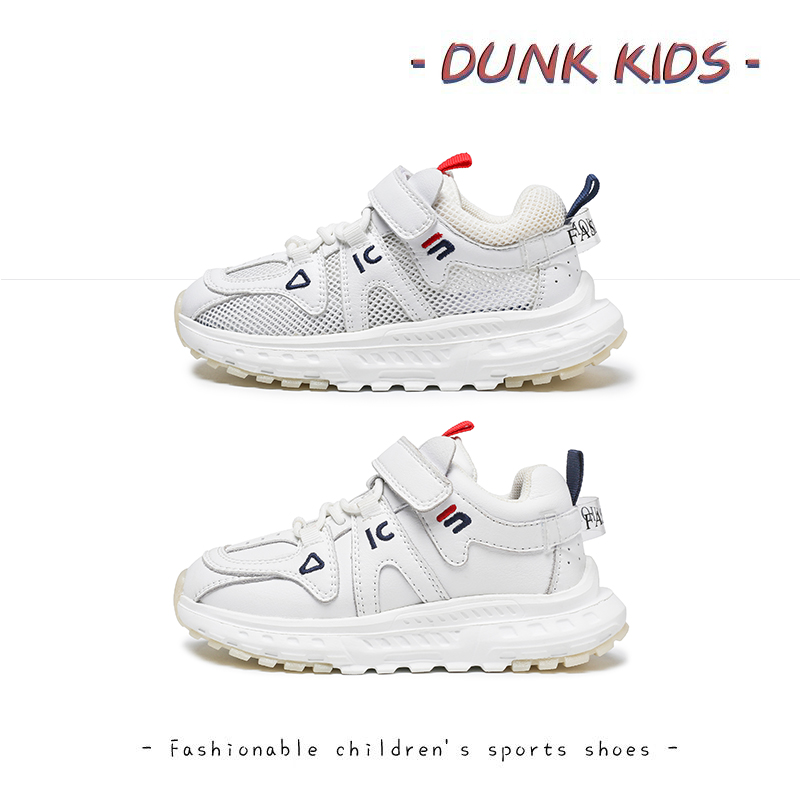 牛皮男童运动鞋春秋款软底白色女童鞋真皮儿童小白鞋老爹鞋休闲鞋