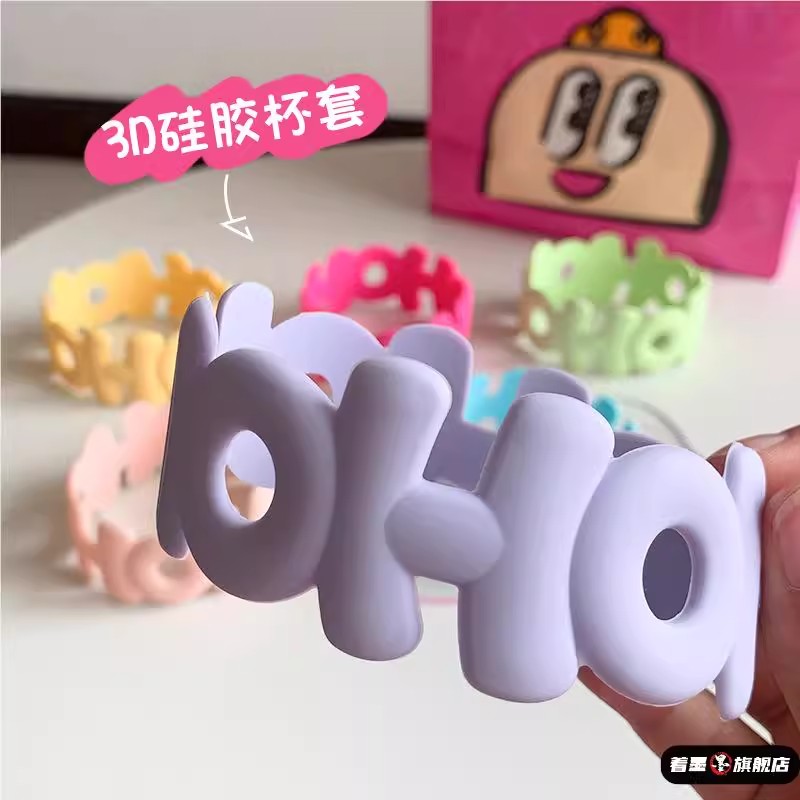 字母硅胶杯套加厚玻璃杯防滑耐热