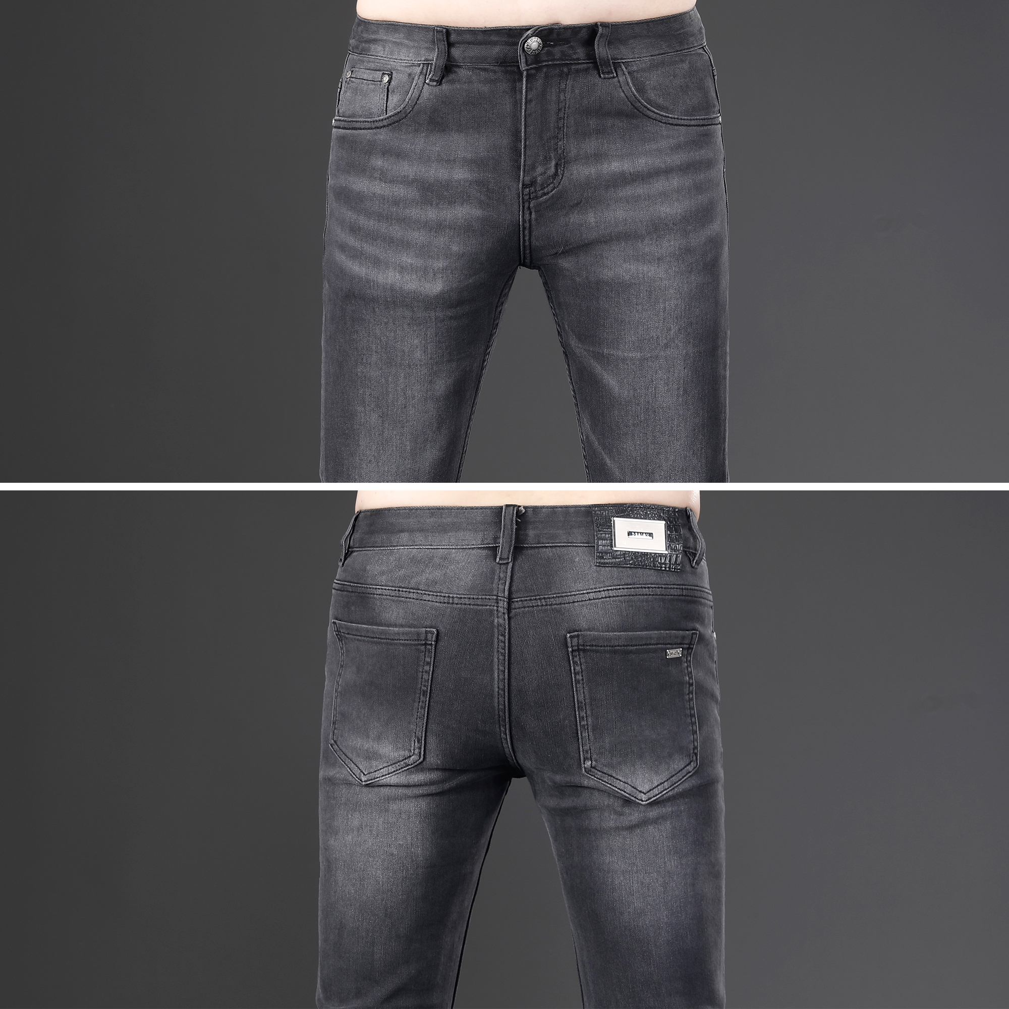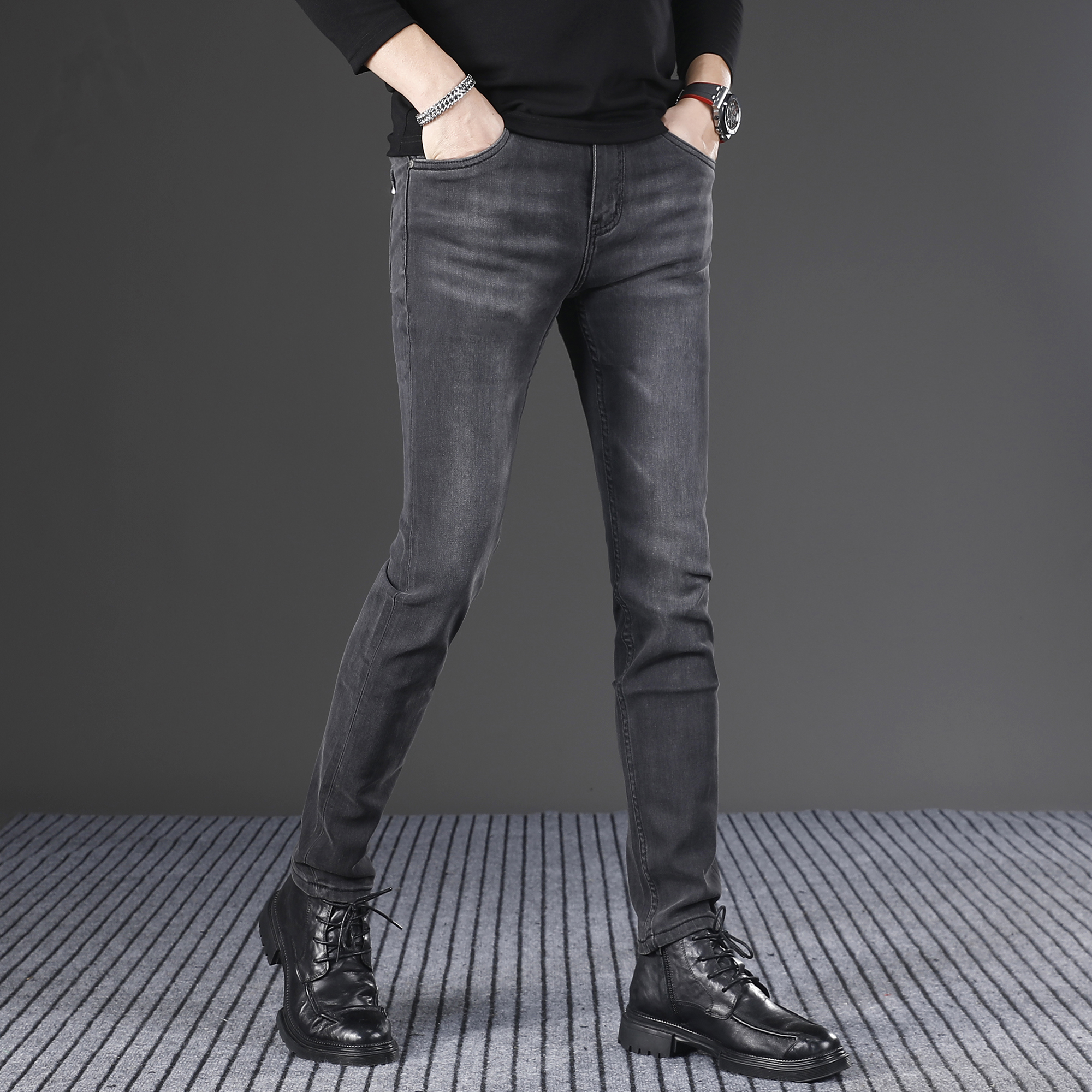 百搭深灰色2024新款男士牛仔裤弹力修身小脚秋冬季潮流休闲裤子