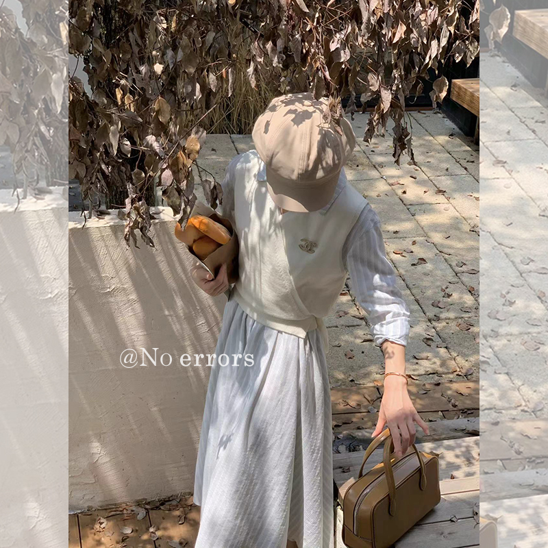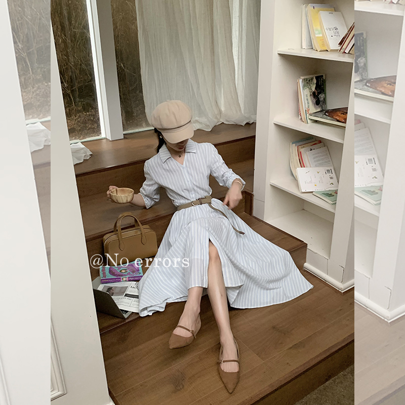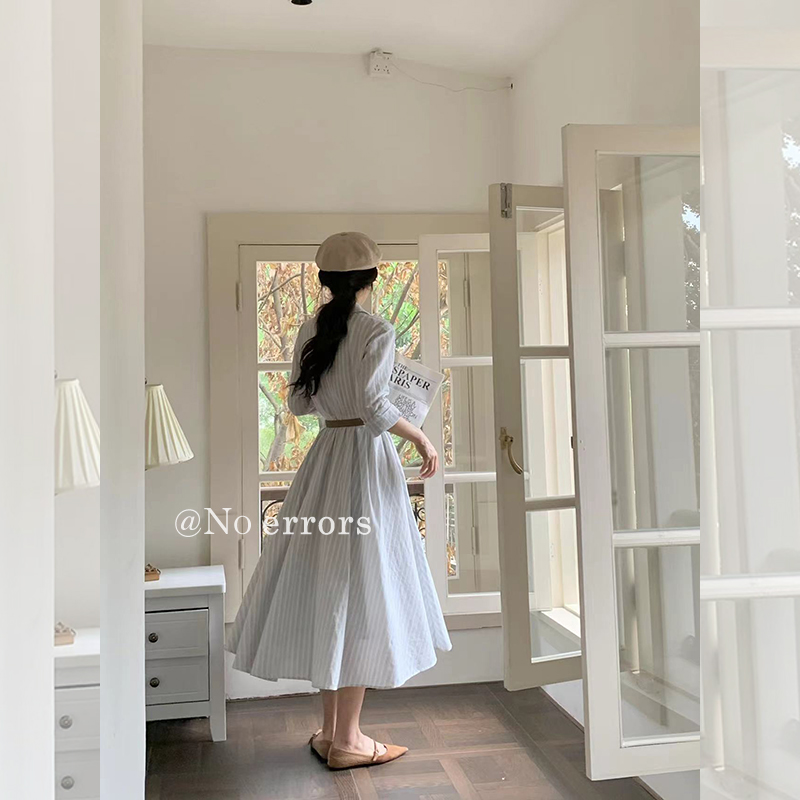 不出错No errors【汉南洞欧尼】收腰显瘦条纹衬衫连衣裙 秋新款