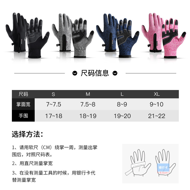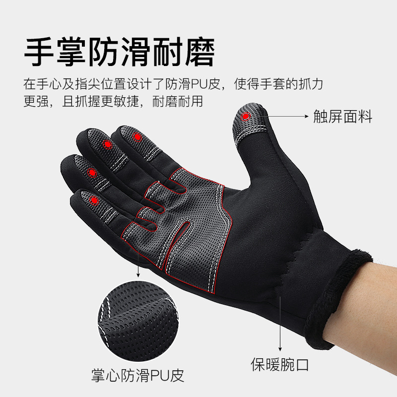 冬季户外运动加绒保暖手套女触屏防水防滑登山滑雪骑行手套男