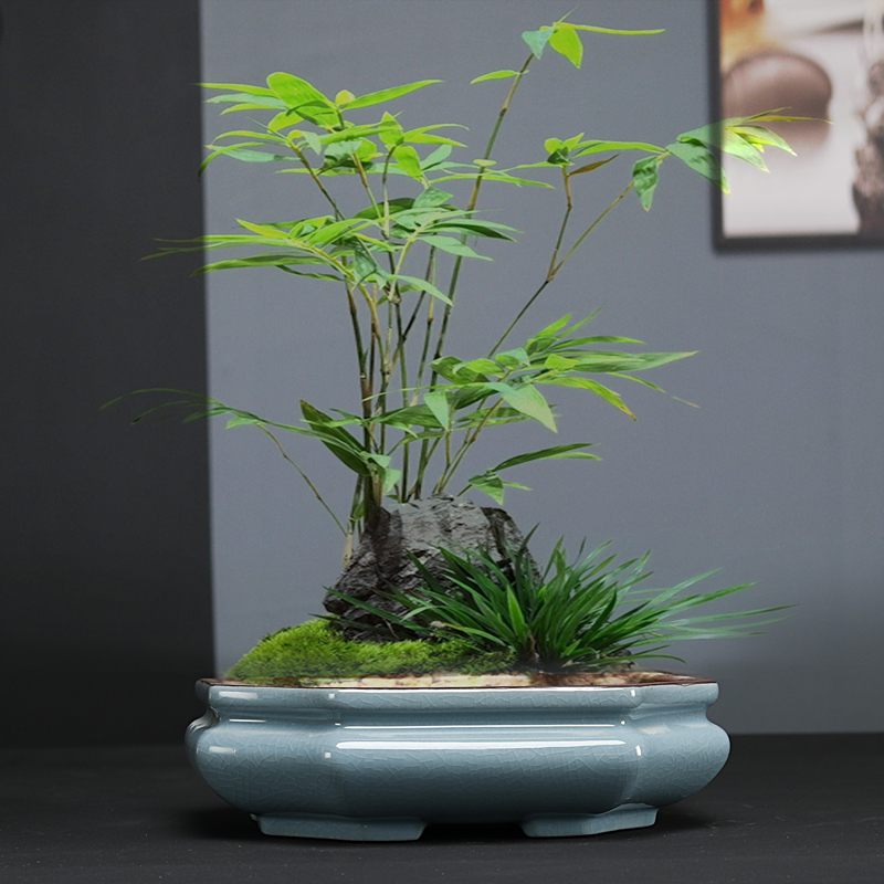 哥窑陶瓷花盆紫砂文竹盆景盆室内客厅绿植造景多肉容器方形椭圆盆